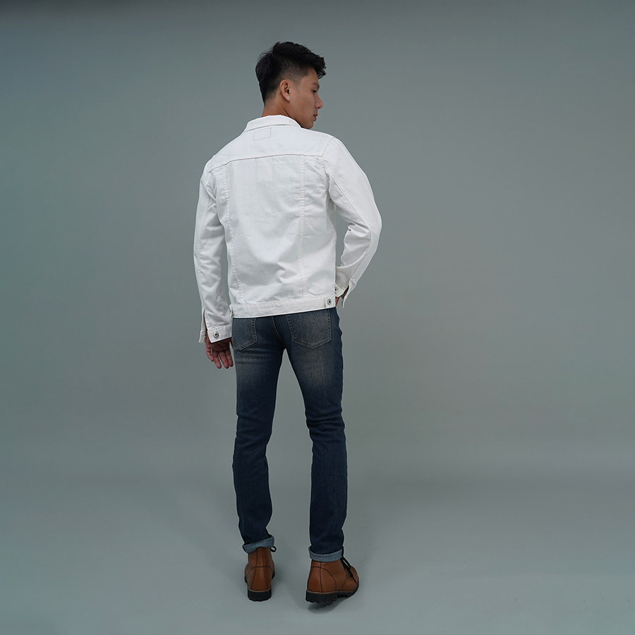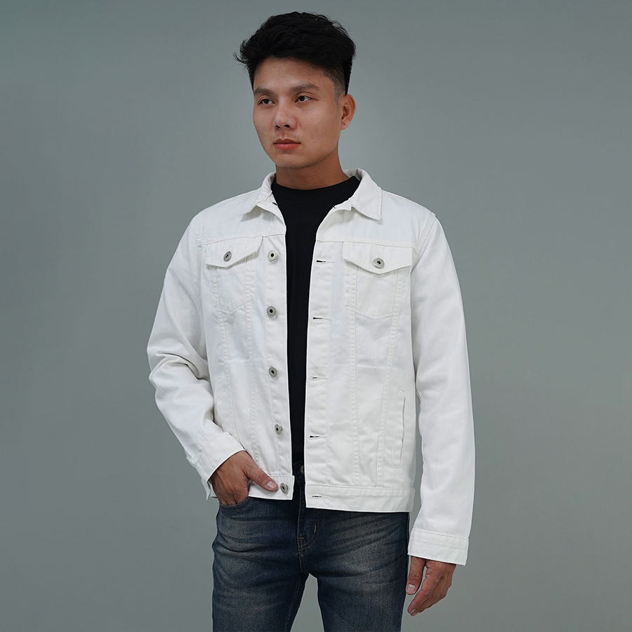 Áo Khoác Jeans Cao Cấp HUNTER X-RAYS Form Slim Cotton Màu Trắng K12 Đặc điểm nổi bật: Nút được đúc nguyên khối bằng đồng và nổi bật thương hiệu HUNTER X-RAYS đảm bảo độ bền