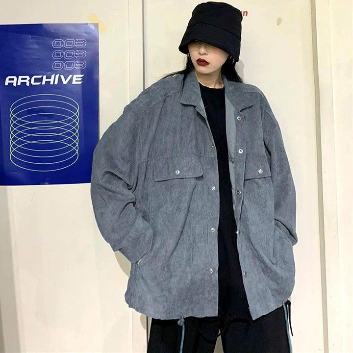 Áo khoác kaki trơn nhung gân