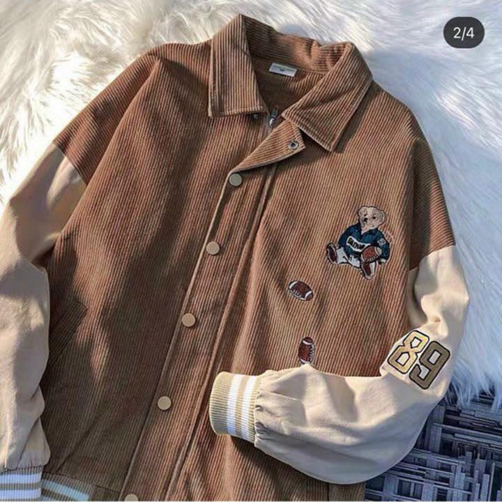 ✨ÁO KHOÁC KAKI NHUNG GÂN Thêu Gấu 89 (M1540 - Kèm Ảnh Thật)