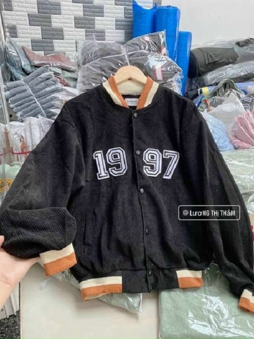 Áo khoác nhung thêu 1997 nam nữ mặc , áo khoác bomber nhung , áo khoác unisex vải nhung , áo khoác cặp đôi vải nhung gân dày mịn : chất liệu vải nhung ,