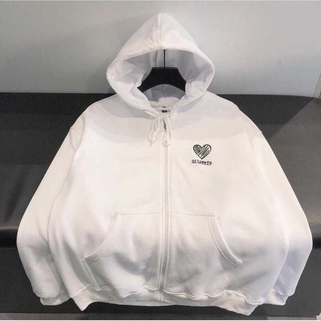 Áo khoác hoodie Heart Unisex Saranghae hình trái tim thêu chất nỉ bông dây kéo form rộng