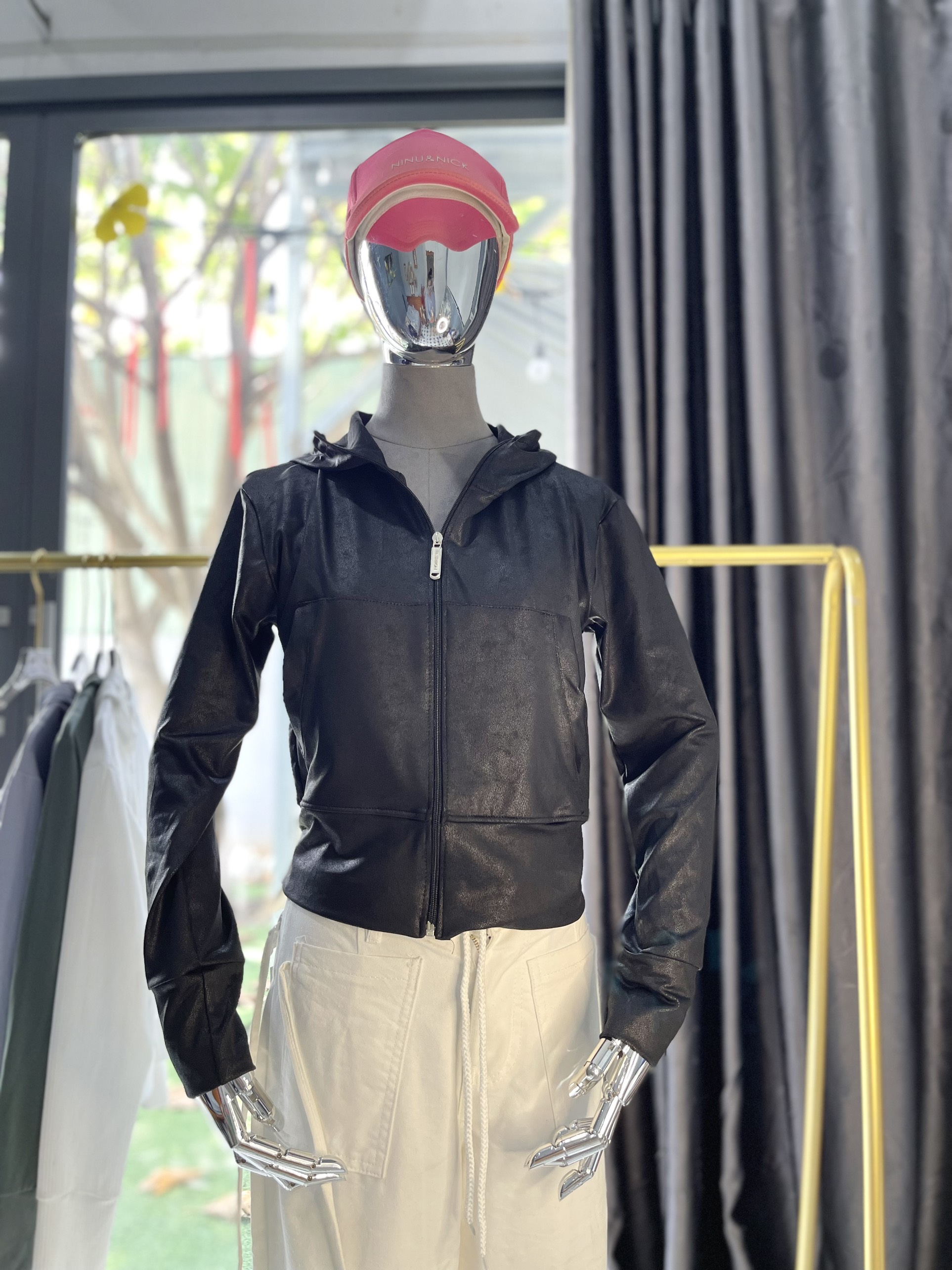 Áo khoác nữ da cá, chất thun giả da thoáng mát mặc chống nắng tốt.