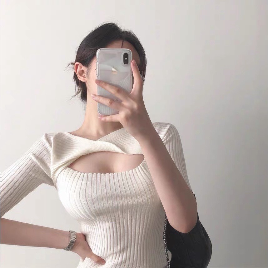 ✨Áo len tay lỡ xoắn ngực mặc được 2 kiểu phong cách tiểu thư sang chảnh