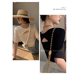 Chất liệu len gân co giãn, không bai, không xù Freesize chị em mặc thoải mái từ 40Kg đến 57kg Dài: 49 cm, Ngực/ Eo: 64 cm, Dài Tay: 26cm Thiết kế cut out phần