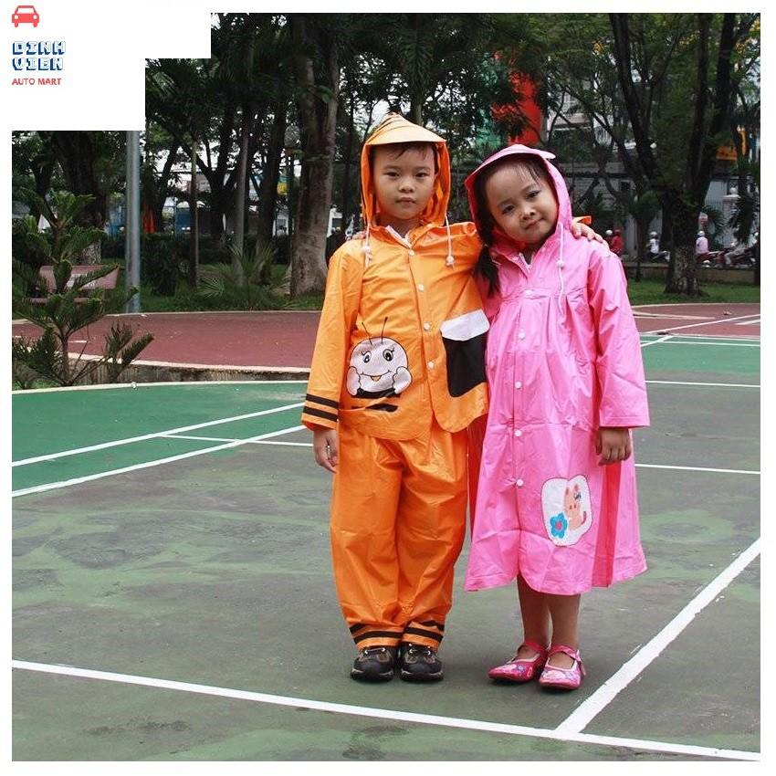 - Áo mưa bít trẻ em cho bé từ 7 - 10 tuổi , vải dù chống thấm phù hợp và tiện lợi cho cả bé trai và bé gái kèm túi đựng cute ,