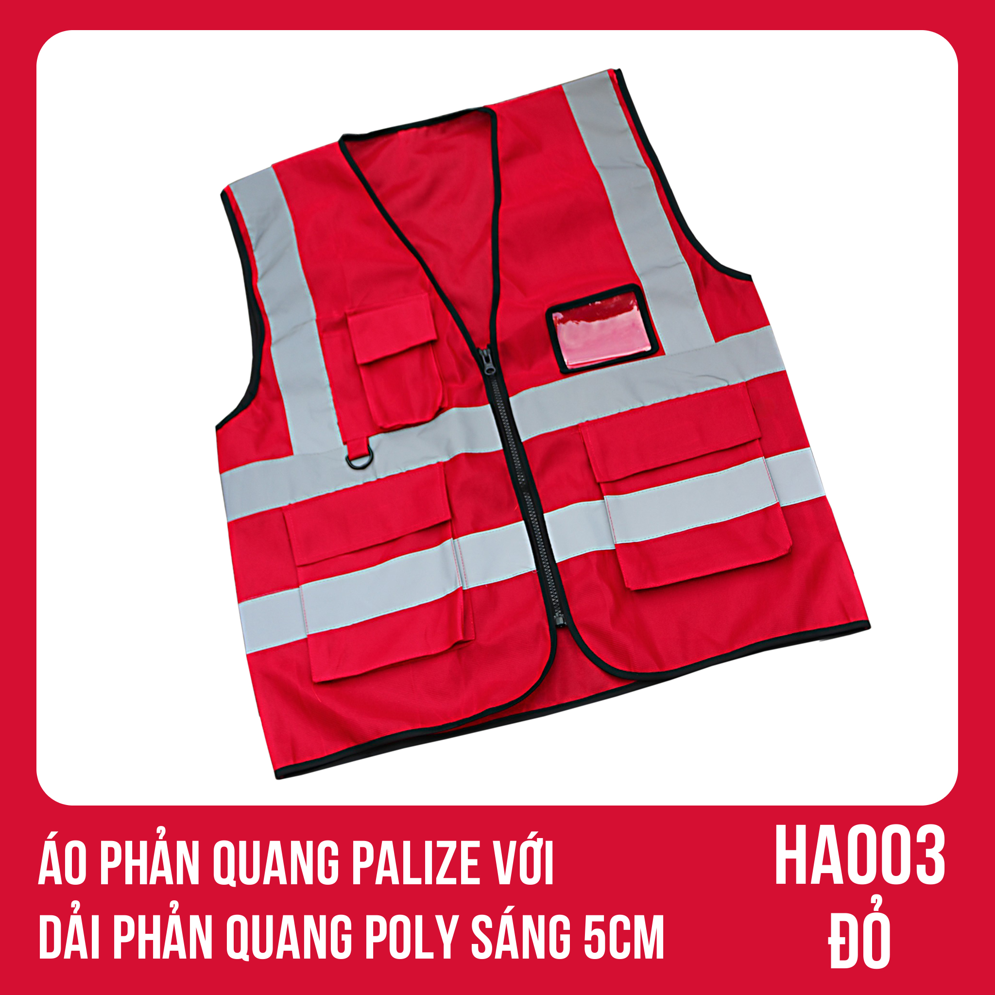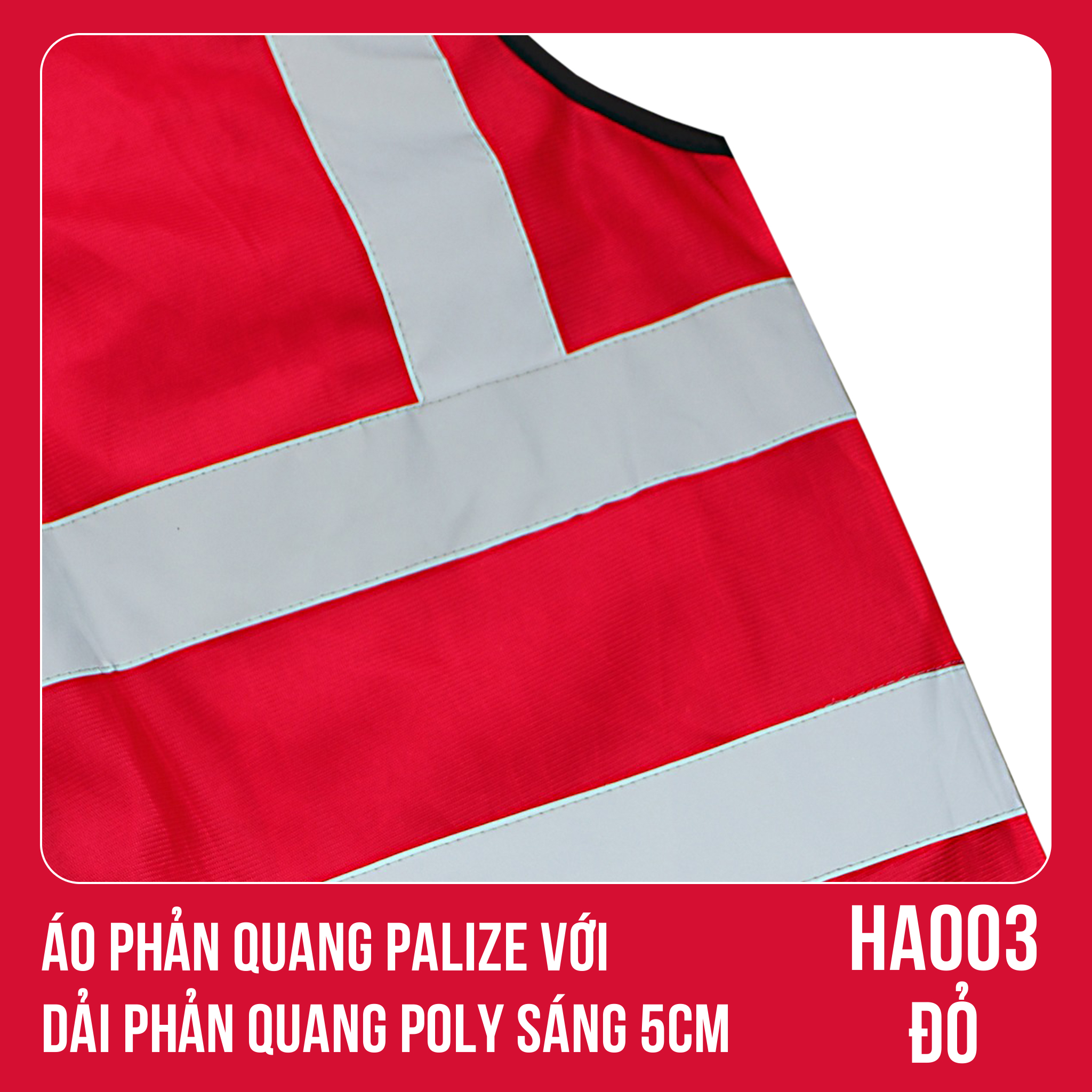 ✨Áo phản quang Palize với dải Phản quang Poly sáng 5cm màu ĐỎ - Mã HA003