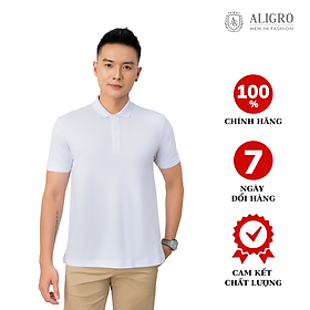 ✨Áo phông cộc tay coupro nam Aligro ALGPLO25 cổ bẻ màu trắng