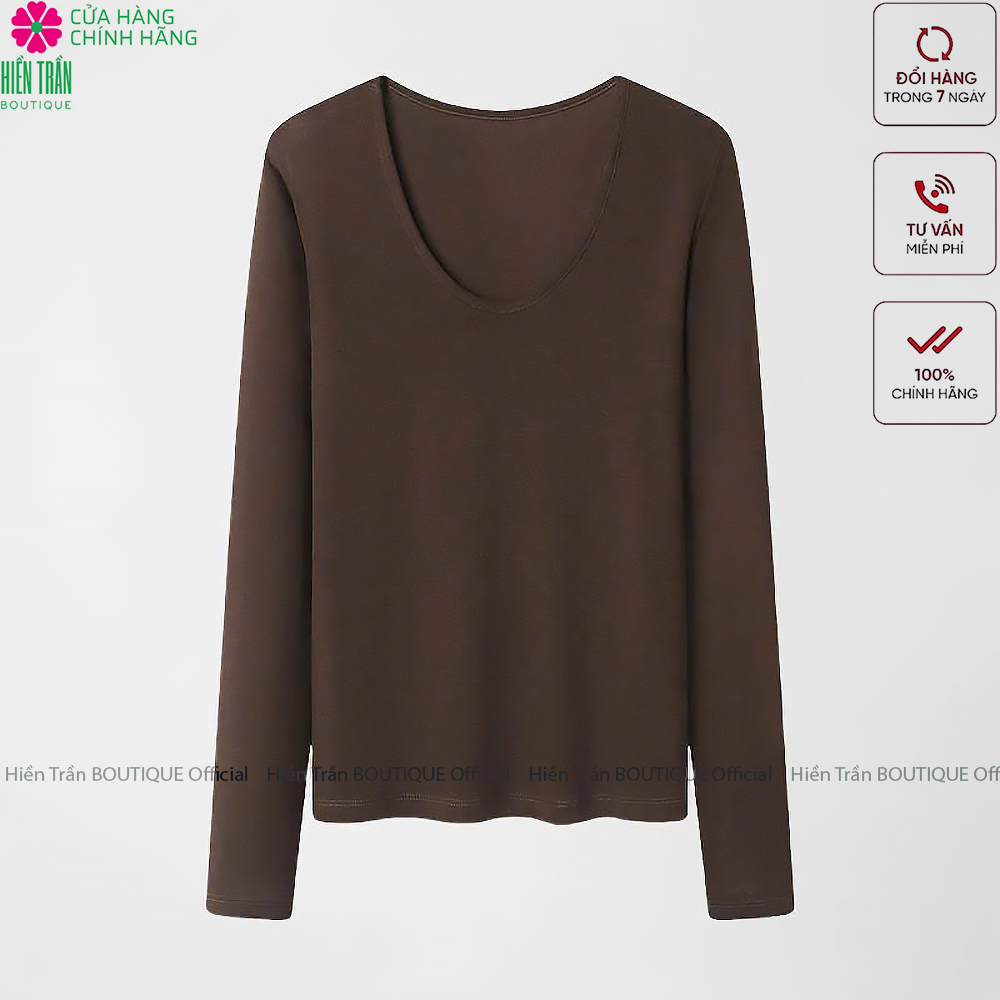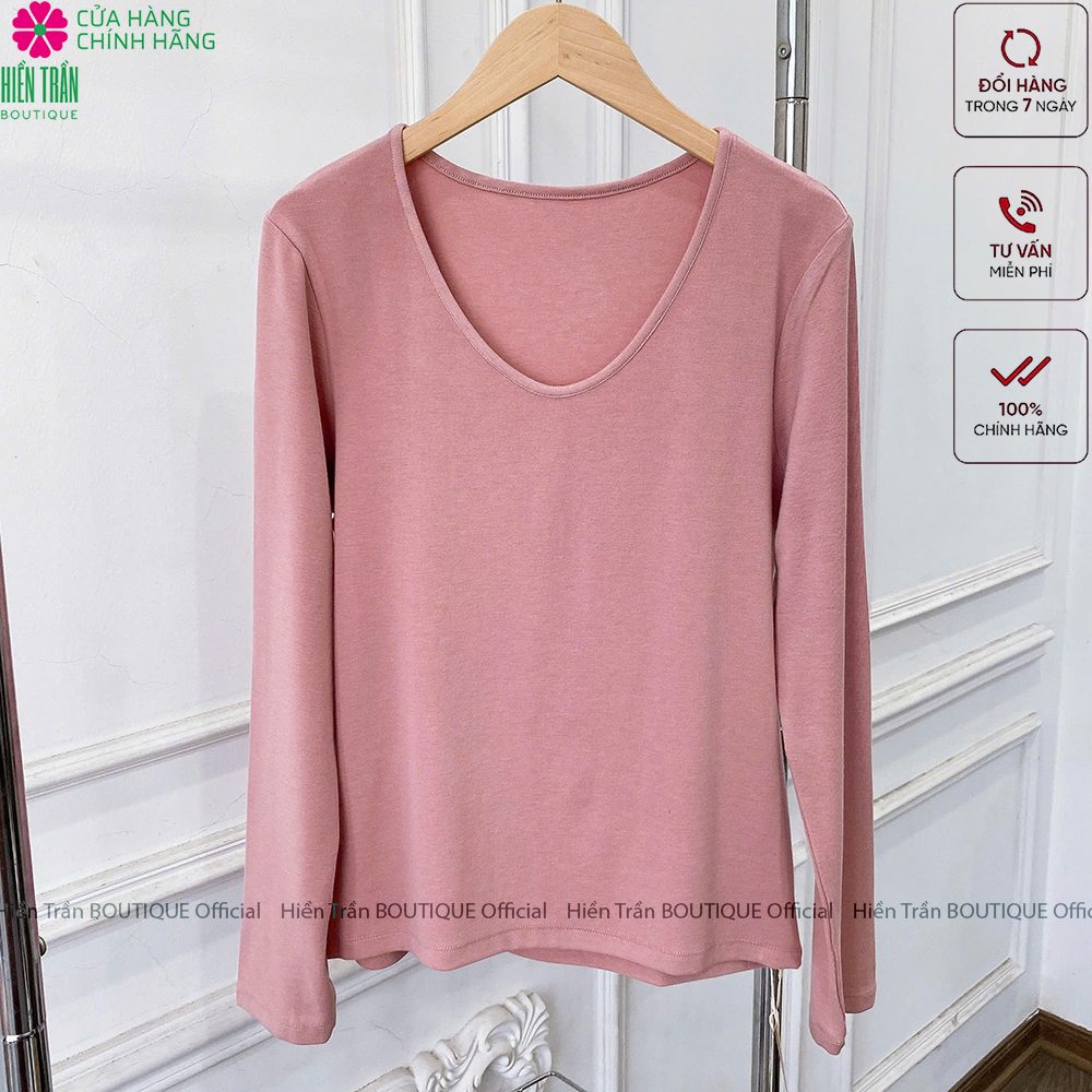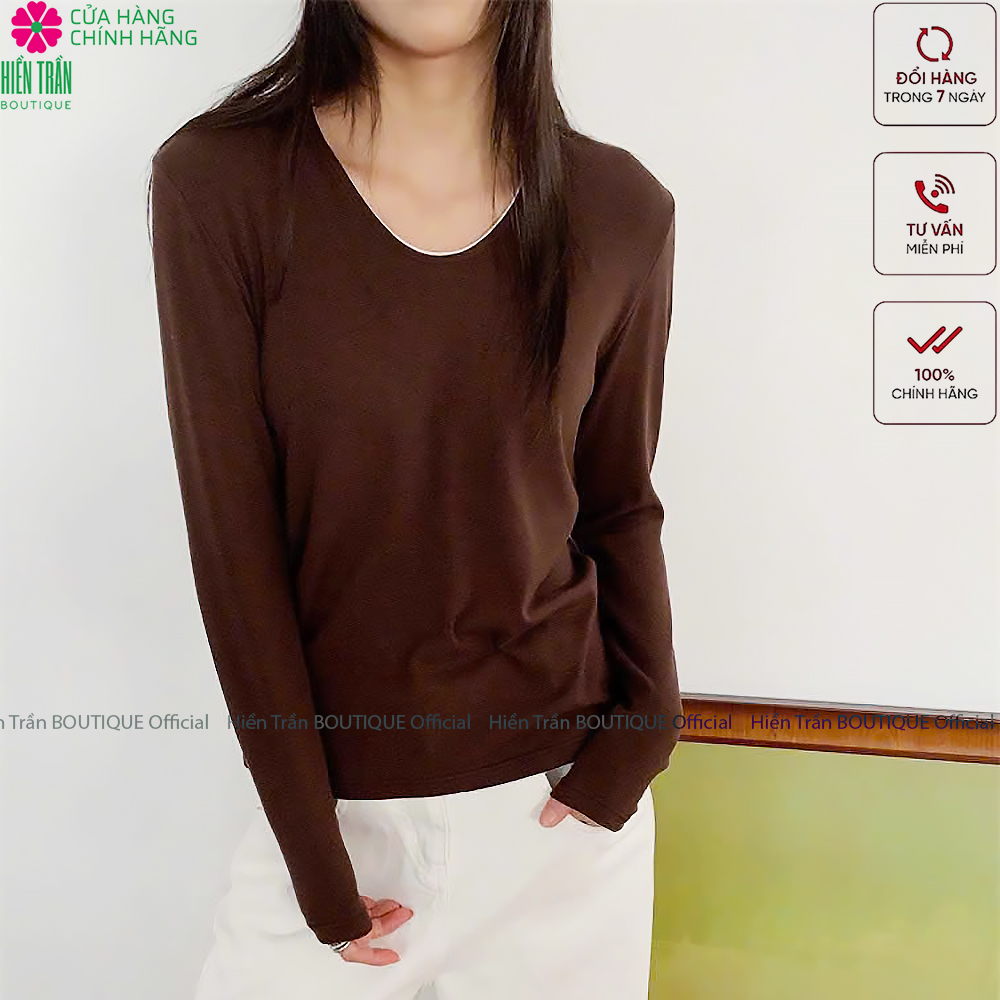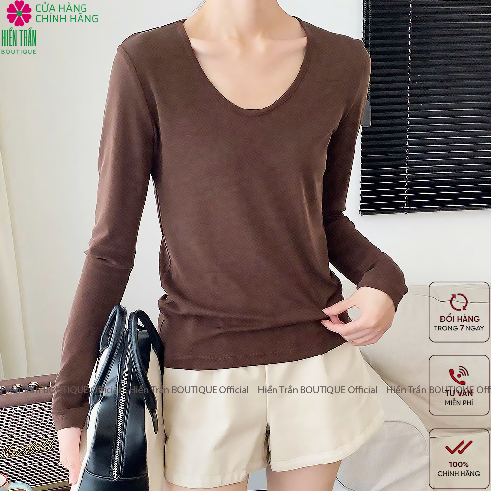 ✨Áo phông nữ dài tay cổ tim Hiền Trần BOUTIQUE chất cotton dẻo cao cấp co giãn áo thun nữ tay dài thu đông A8