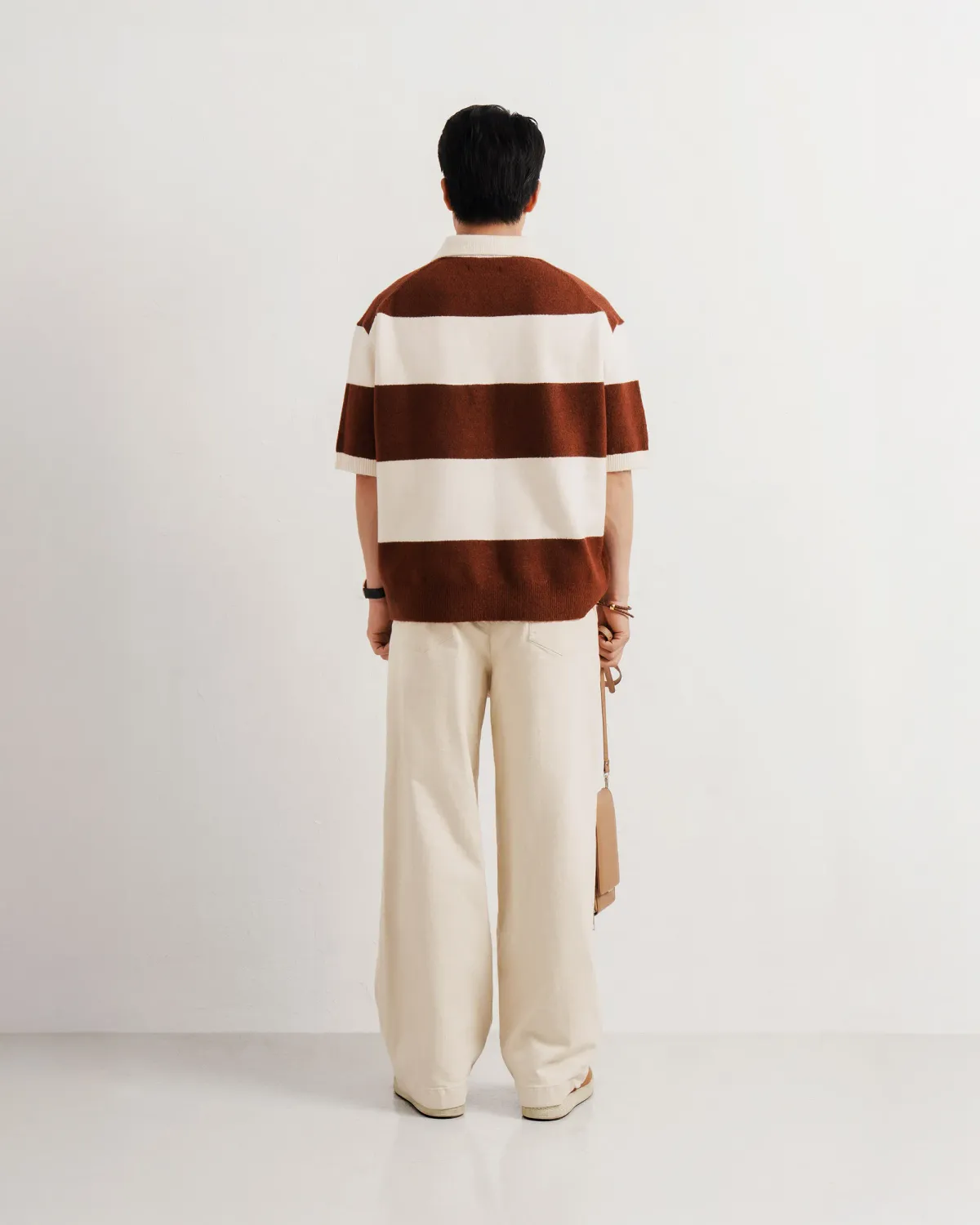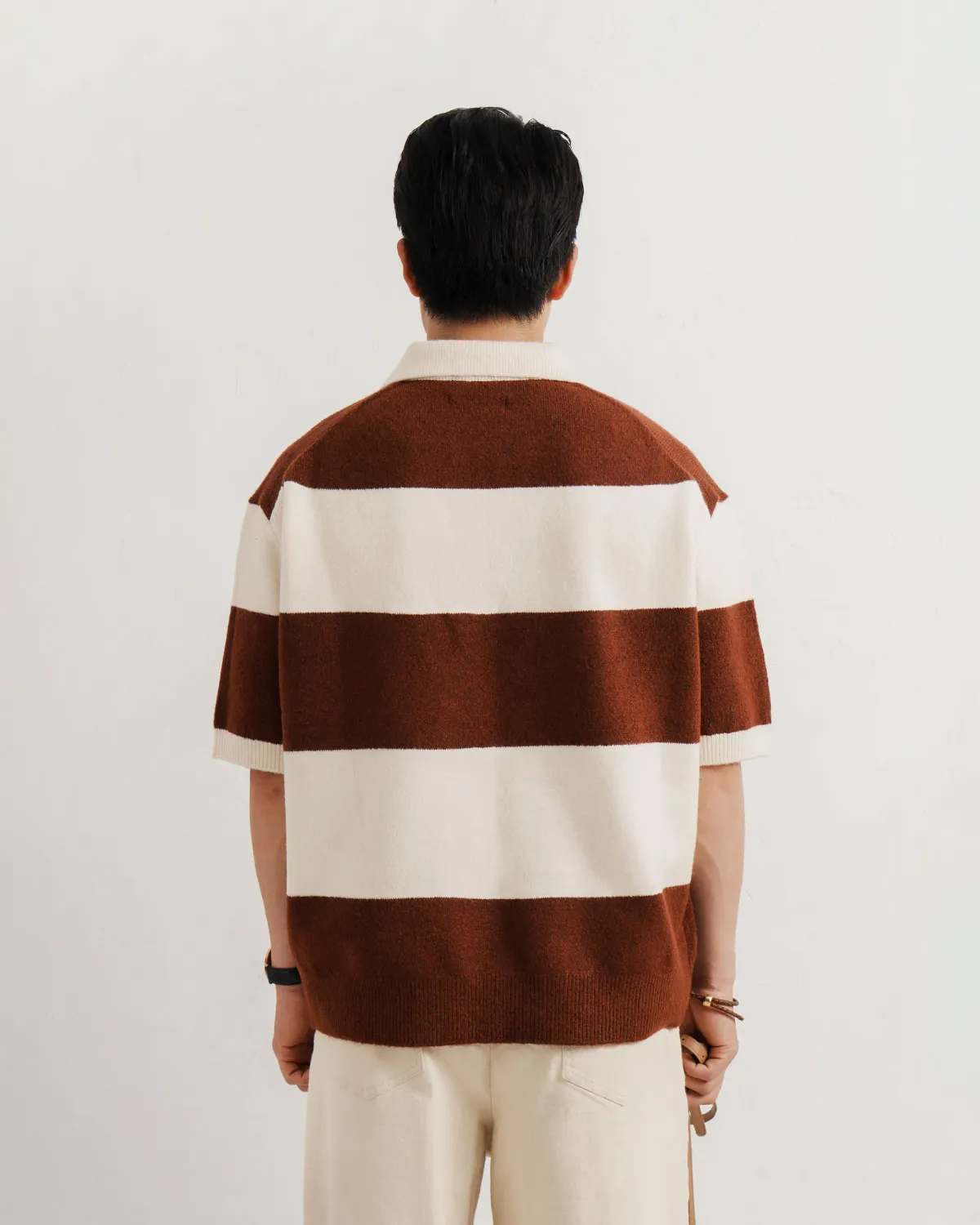 Áo polo dệt kim tay ngắn nam kẻ sọc. Loose - ROUTINE 10F25KNI008