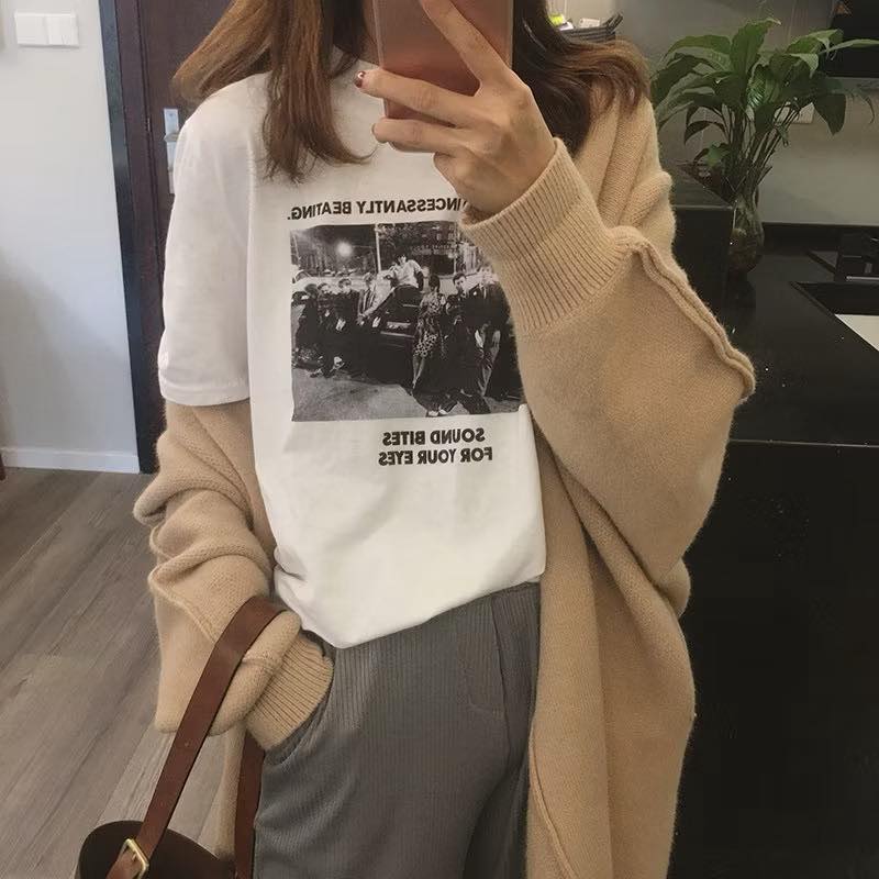 ✨Áo pull nữ màu trắng trẻ trung hình họa tiết bức tranh