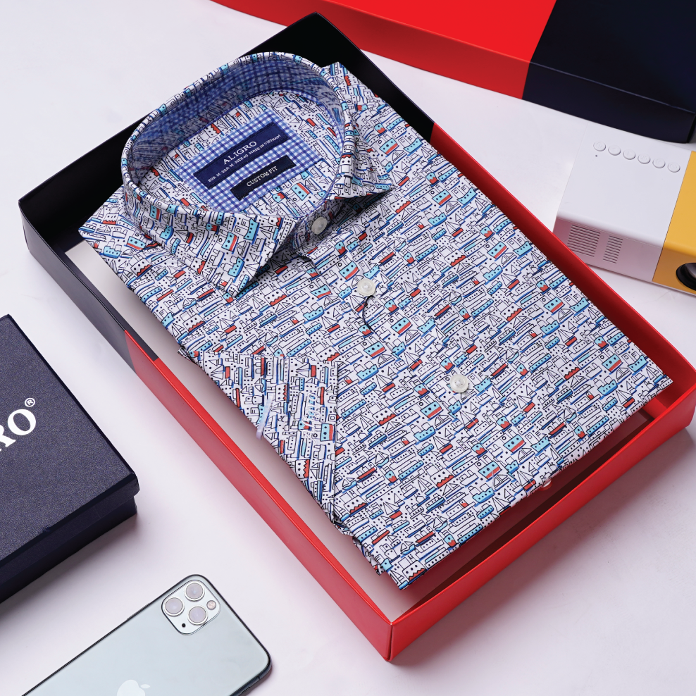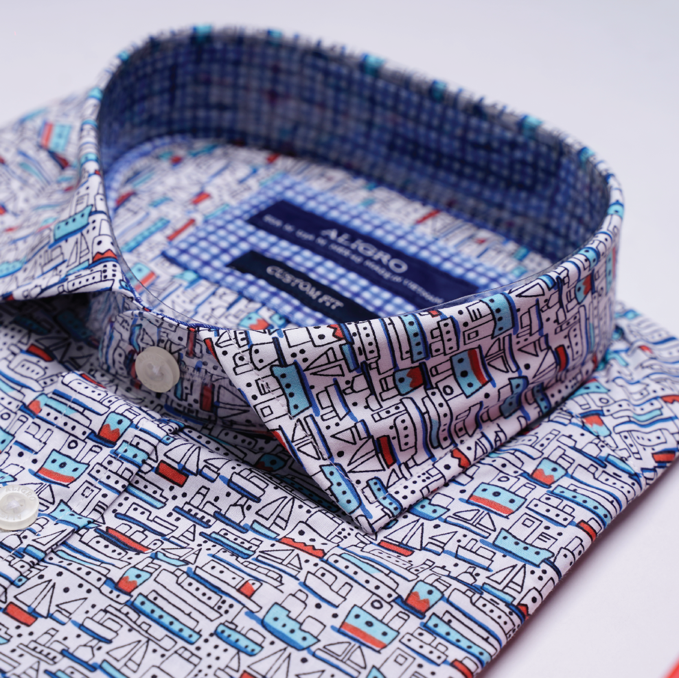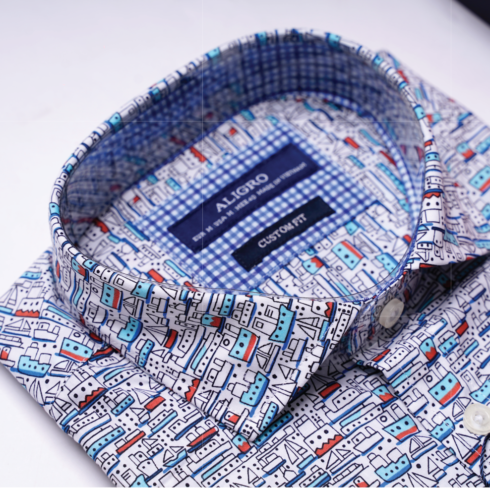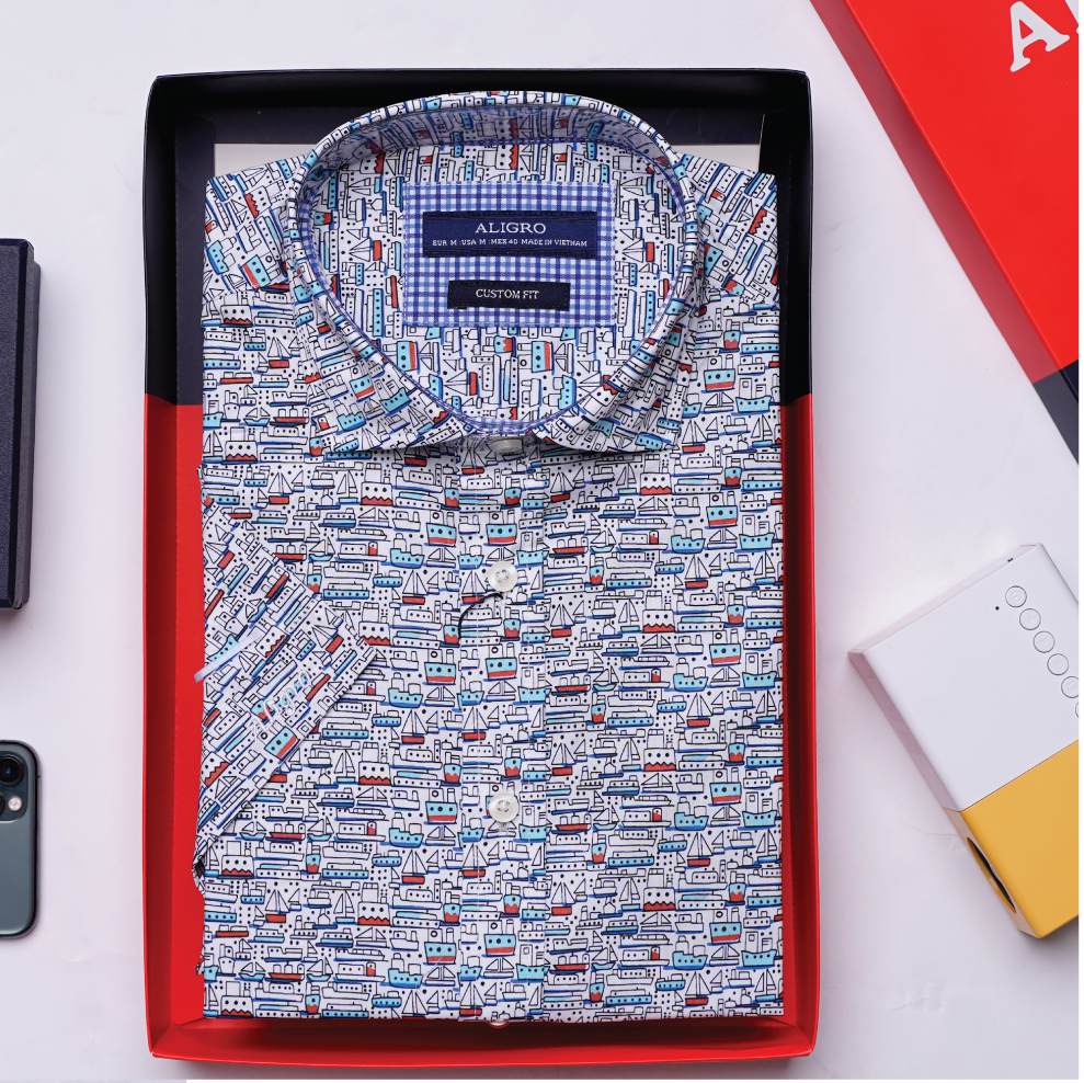 ✨Áo sơ mi cộc tay nam họa tiết thuyền dáng customfit Aligro ALGS-C87