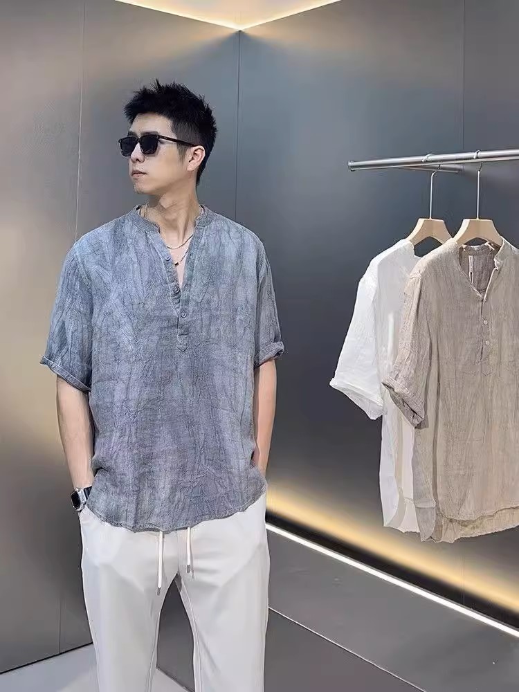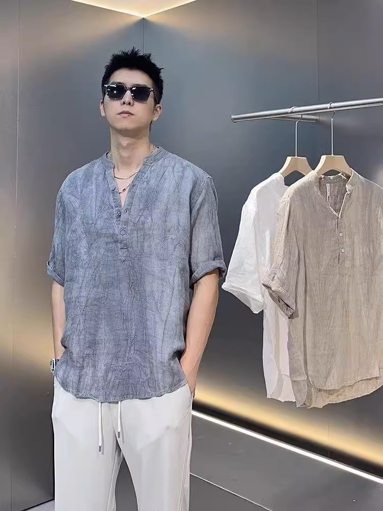 ✨Áo sơ mi đũi nam retro ngắn tay cổ tàu mẫu mới cao cấp