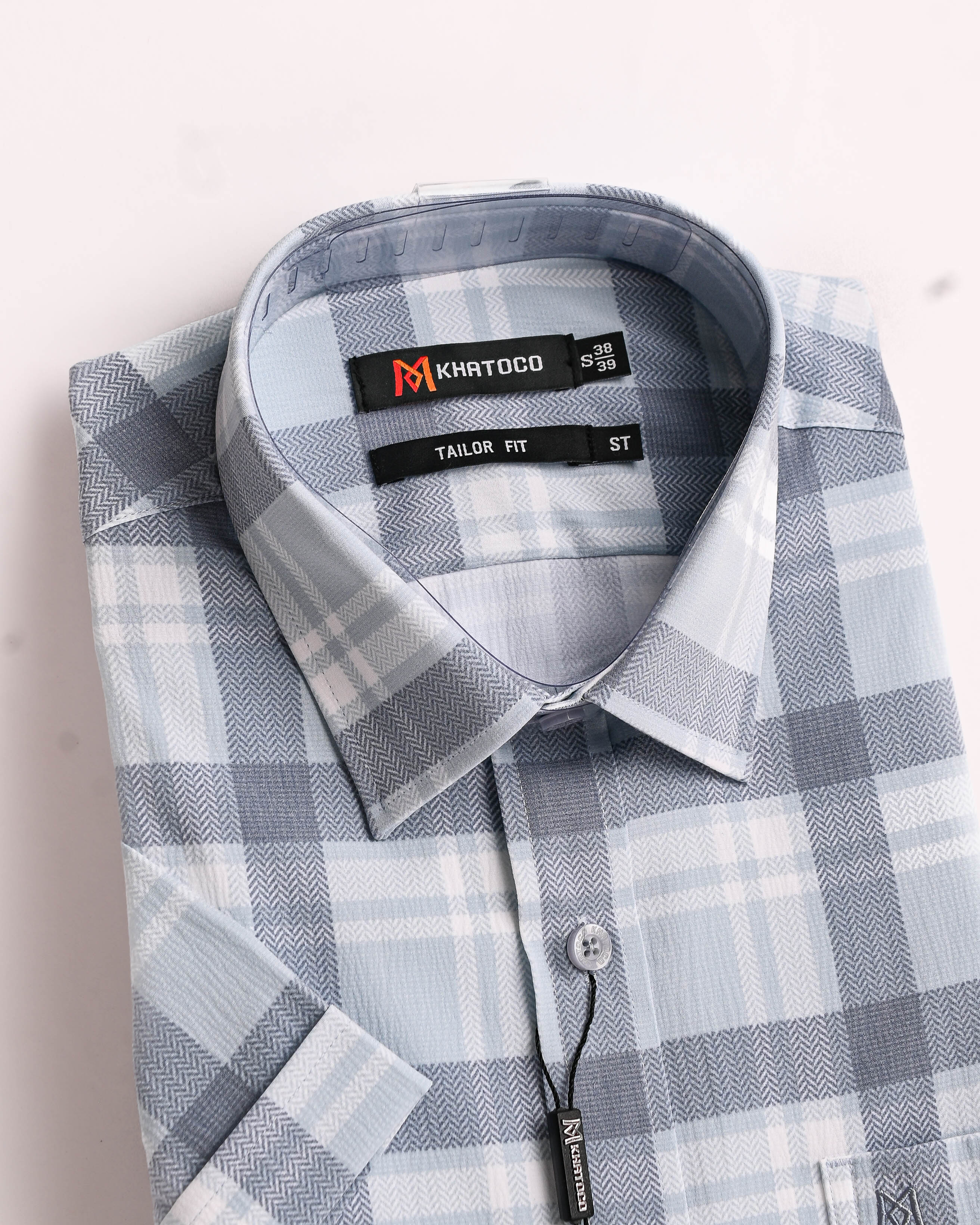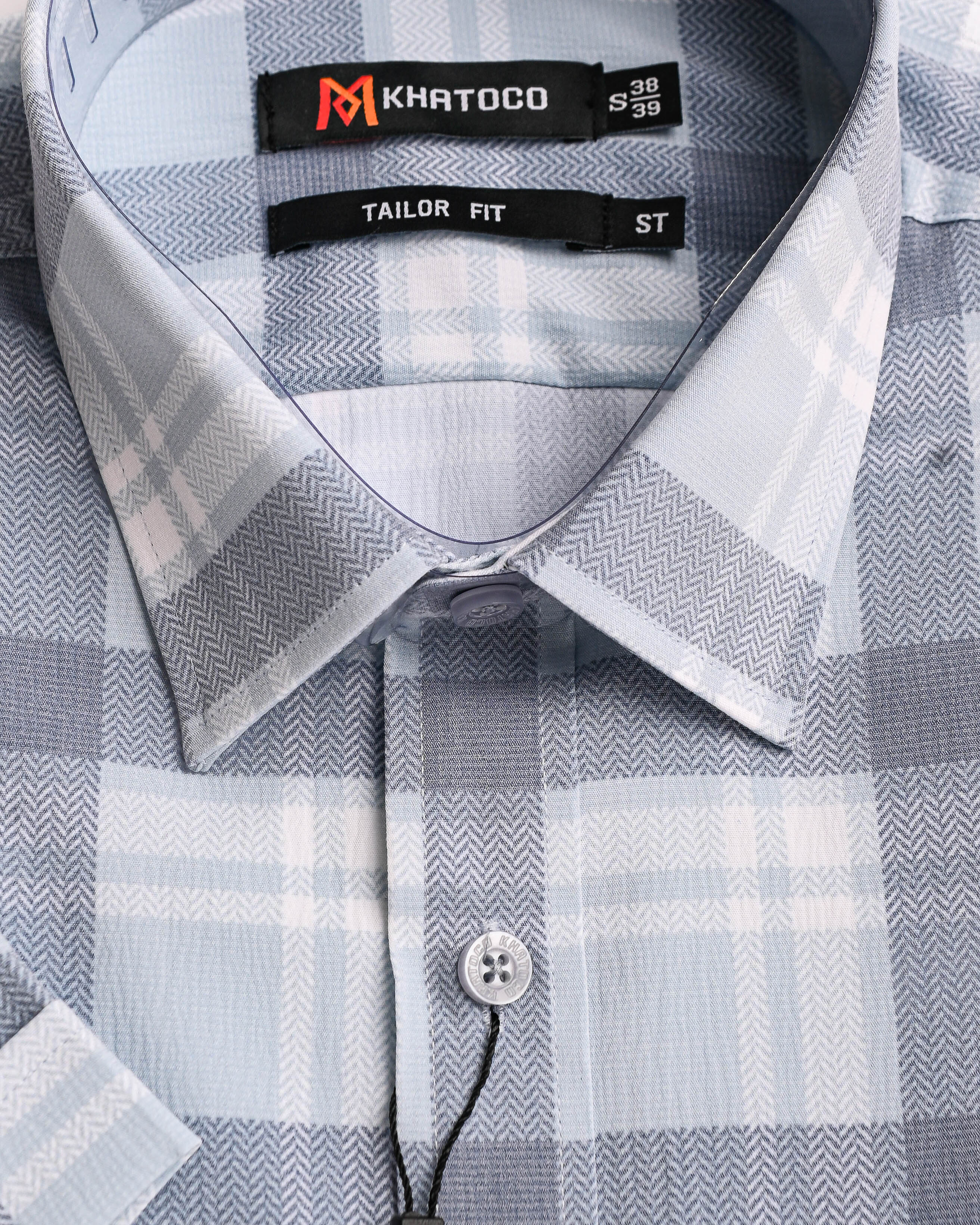 Áo sơ mi nam tay ngắn lai ngang – Khatoco - Mã hàng: A1MN538T2 - Chất liệu: 75% Polyester + 22% Viscose (Bamboo) + 3% Spandex → Vải mềm mại, thoáng mát, co giãn nhẹ,