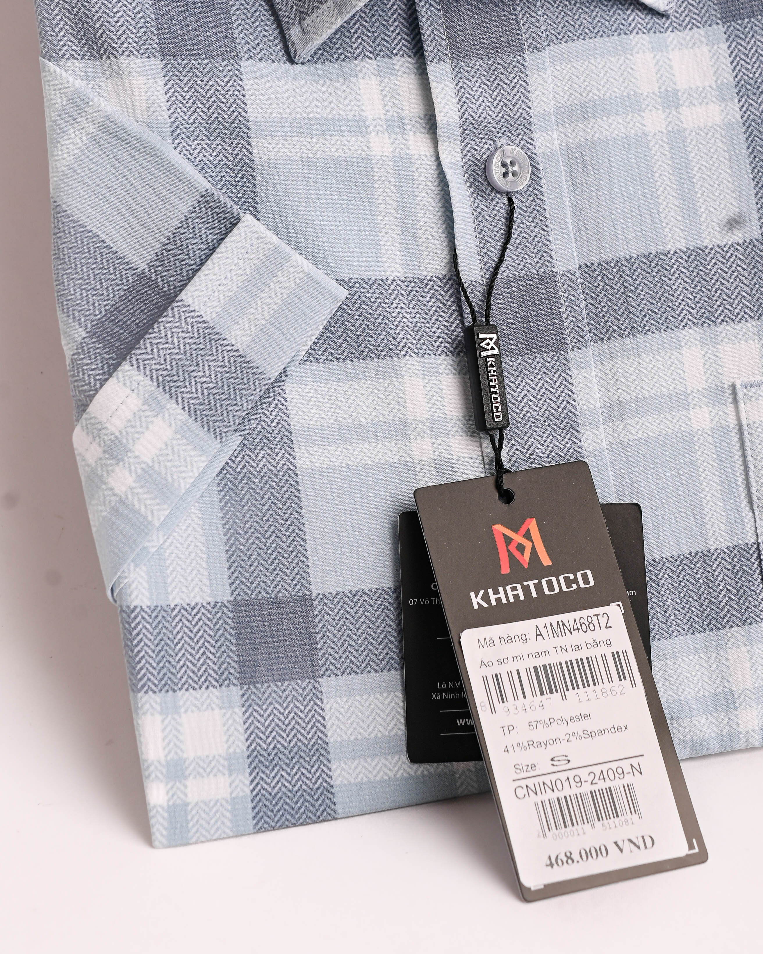Mô tả sản phẩm – Áo sơ mi nam tay ngắn Khatoco (Mã A1MN498T2) Chất liệu cao cấp: - 58% Polyester – bền màu, giữ form tốt. - 40% Viscose (Wormwood) – mềm mại, thoáng