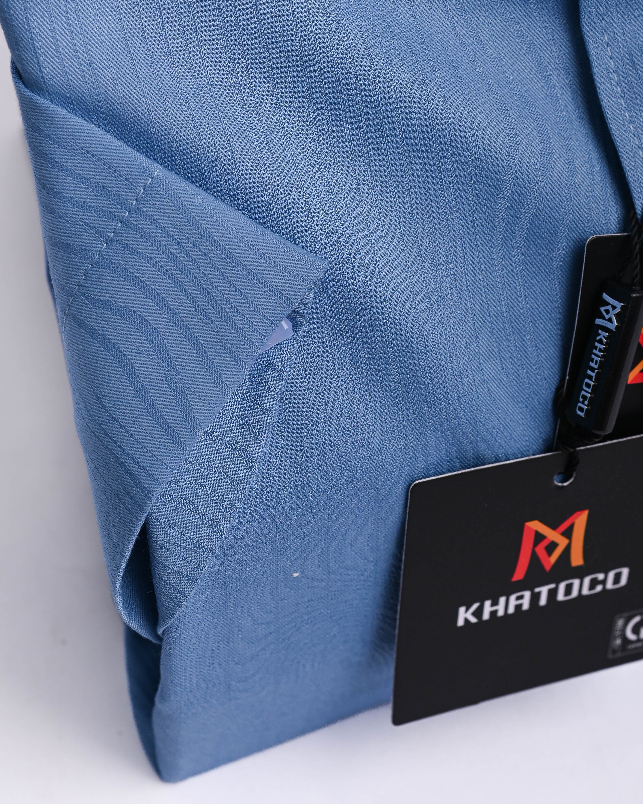 Áo sơ mi nam tay ngắn lai ngang – Khatoco - Mã hàng: A1MN538T2 - Chất liệu: 75% Polyester + 22% Viscose (Bamboo) + 3% Spandex → Vải mềm mại, thoáng mát, co giãn nhẹ,