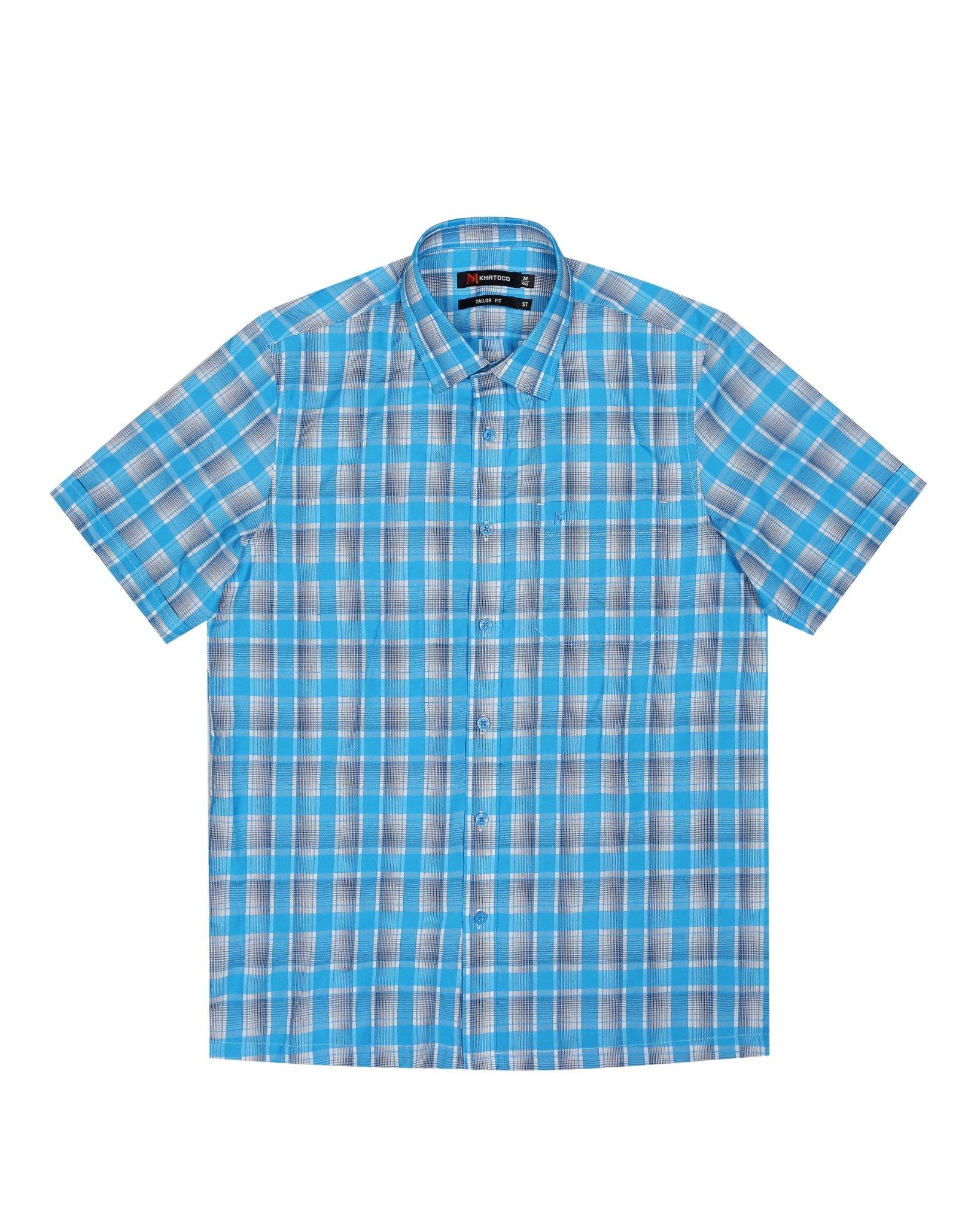 ✨Áo sơ mi nam KHATOCO ngắn tay kẻ caro A1MN438T2-CNCR166-2410-N