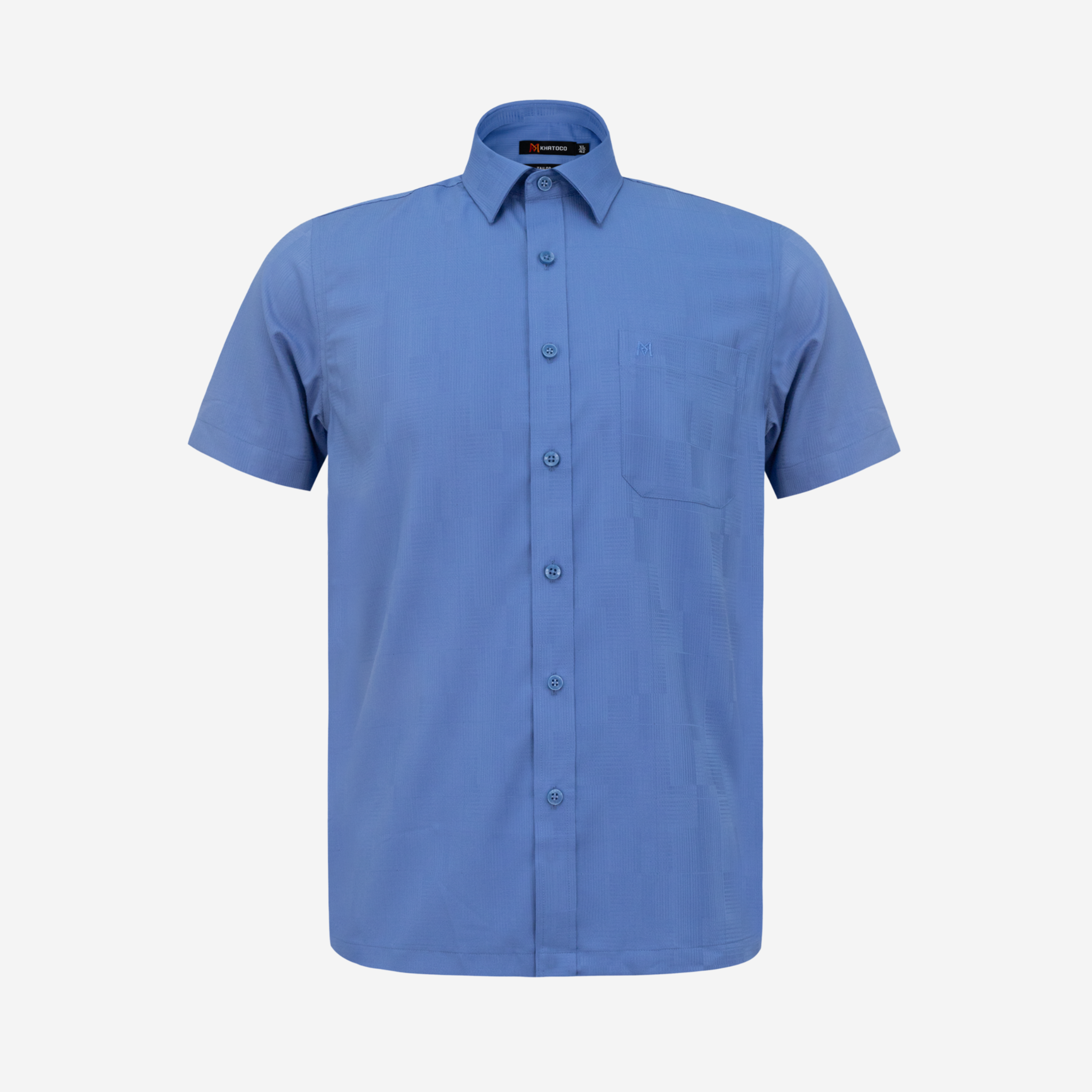 Áo sơ mi nam tay ngắn lai ngang – Khatoco - Mã hàng: A1MN538T2 - Chất liệu: 75% Polyester + 22% Viscose (Bamboo) + 3% Spandex → Vải mềm mại, thoáng mát, co giãn nhẹ,