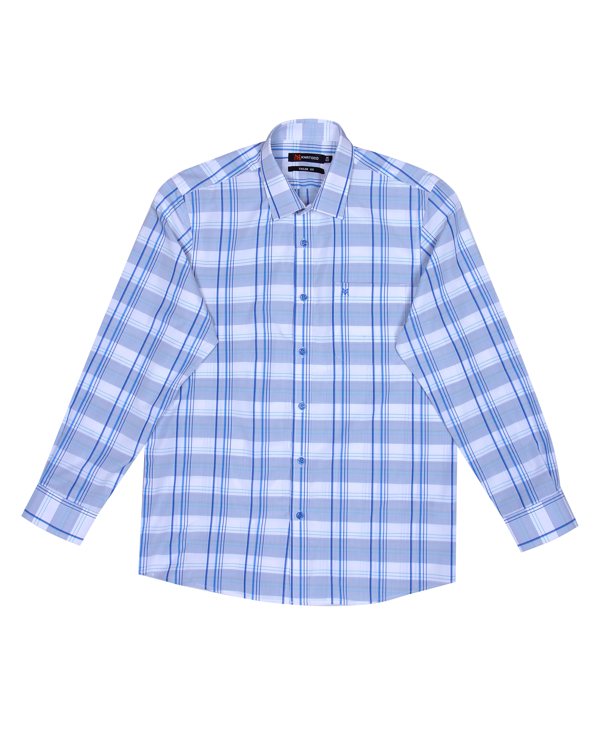 Áo sơ mi nam trung niên, Áo sơ mi nam công sở Anton, Áo sơ mi nam dài tay họa tiết caro xanh Vải cotton thoáng mát, thấm hút tốt, mềm mịn không xù Qúy
