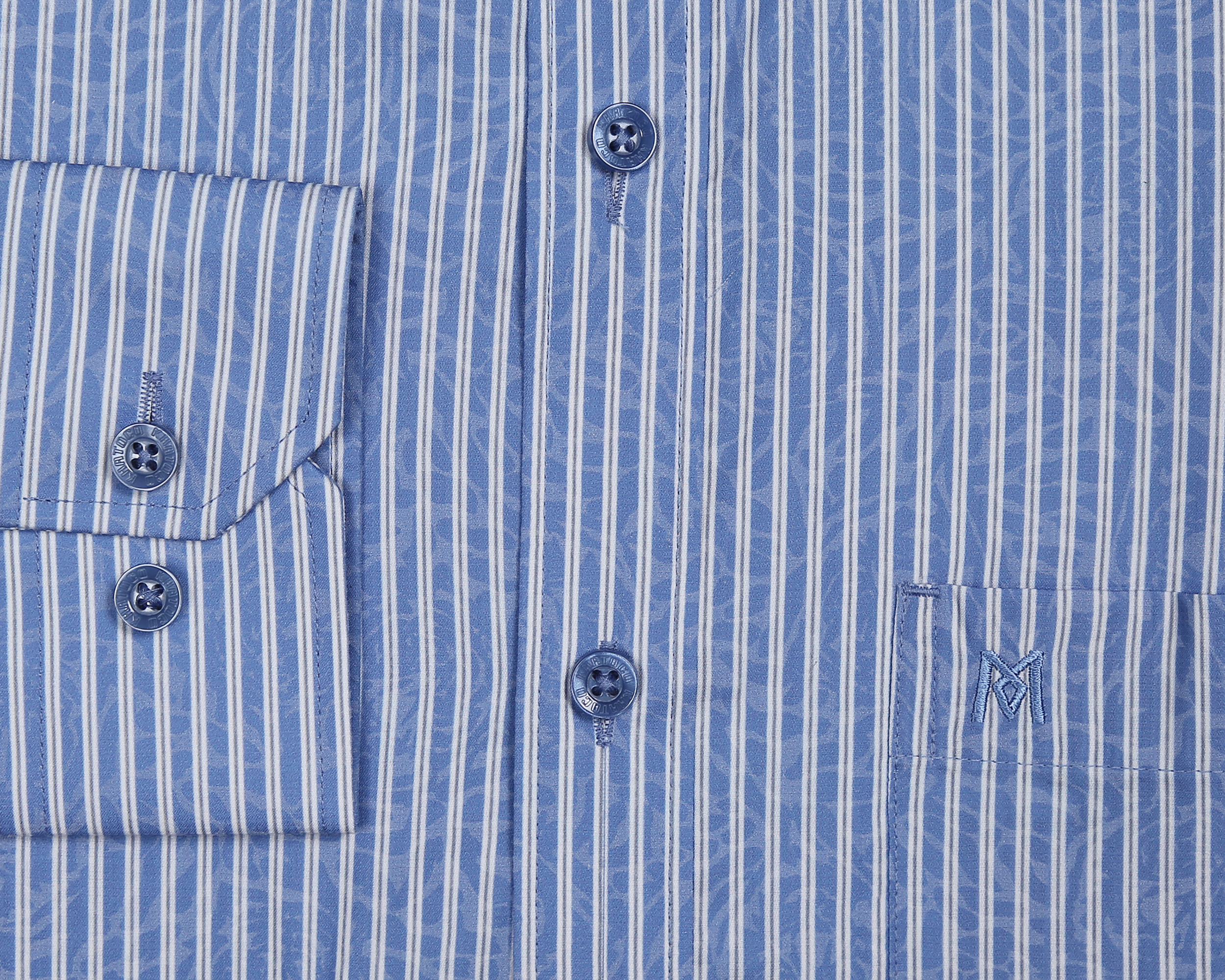 Thành phần : 85%Polyester-15% Viscose Phom dáng : Tailor Fit Màu sắc : BLUE Kiểu dáng : TAY DÀI Hoa văn : HOA VĂN Áo sơ mi tay dài lai bầu, suông vừa ,