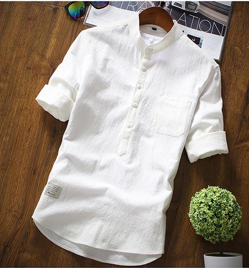 Áo Sơ mi nam dài tay cổ bẻ có túi ngực vải đũi kiểu dáng Basic Chất (0964975999)