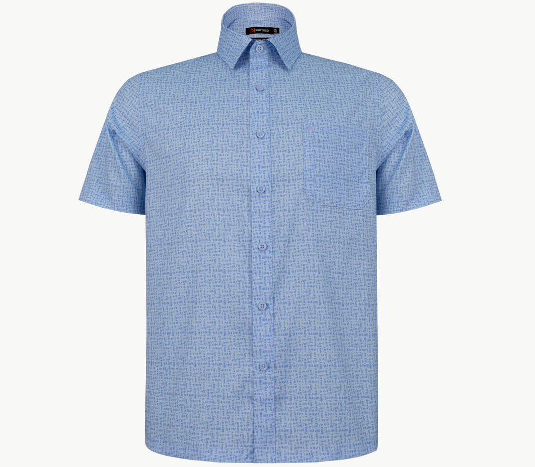 Áo sơ mi nam tay ngắn lai ngang – Khatoco - Mã hàng: A1MN498T2 - Chất liệu: - 77% Polyester (Microfiber) - 19% Viscose (Modal) - 4% Spandex → Vải cao cấp, mềm mại, thấm