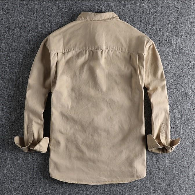 Áo sơmi lính tay dài phong cách off road dã ngoại Được làm bằng chất liệu kaki mềm mặc rất bụi và đúng phom áo Chất liệu vải dày vừa phải nên có thể mặc