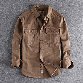 Áo sơmi lính tay dài phong cách off road dã ngoại Được làm bằng chất liệu kaki mềm mặc rất bụi và đúng phom áo Chất liệu vải dày vừa phải nên có thể mặc