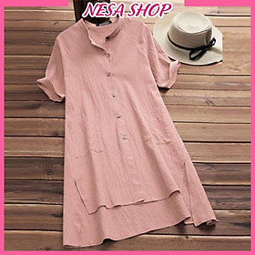 ✨Áo sơ mi váy dáng dài, chất liệu đũi mềm mịn, áo váy nữ, form dài rộng kiểu Hàn Quốc, NeSa Shop AKH.35