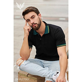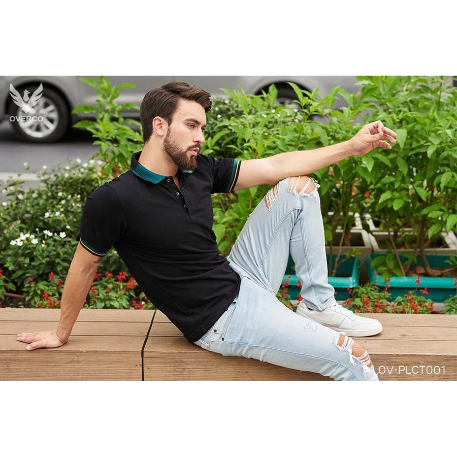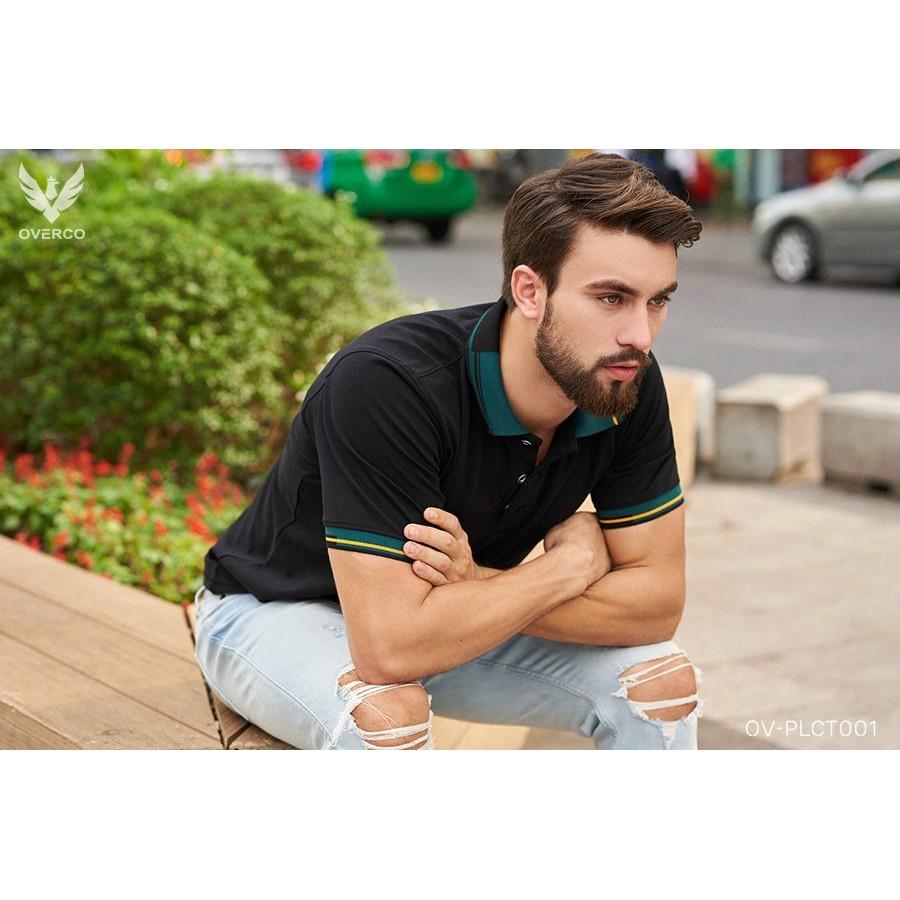 ✨Áo Thun Cá Sấu Nam OVERCO Cổ Bẻ Màu Đen Phối Bo Tay Thời Trang