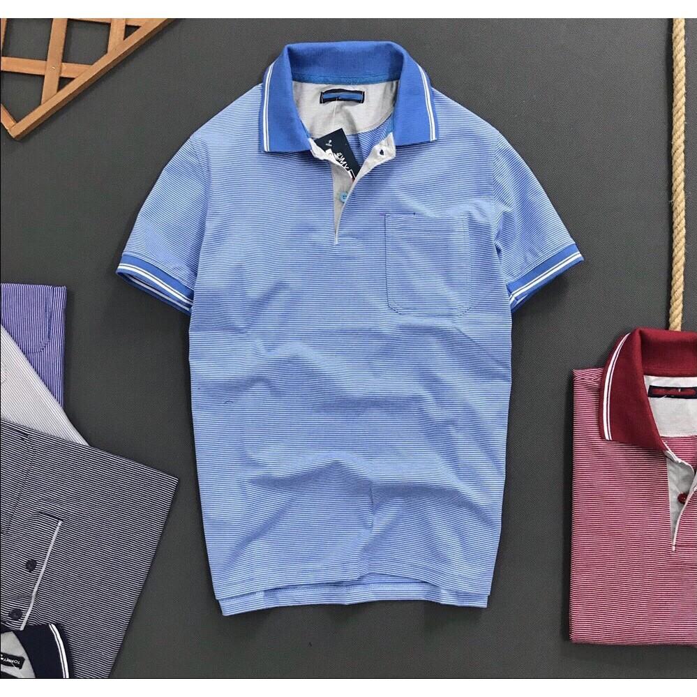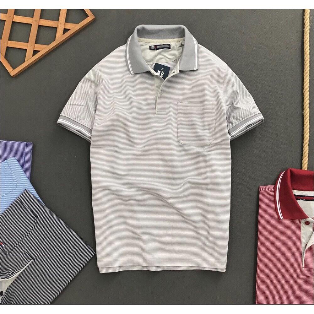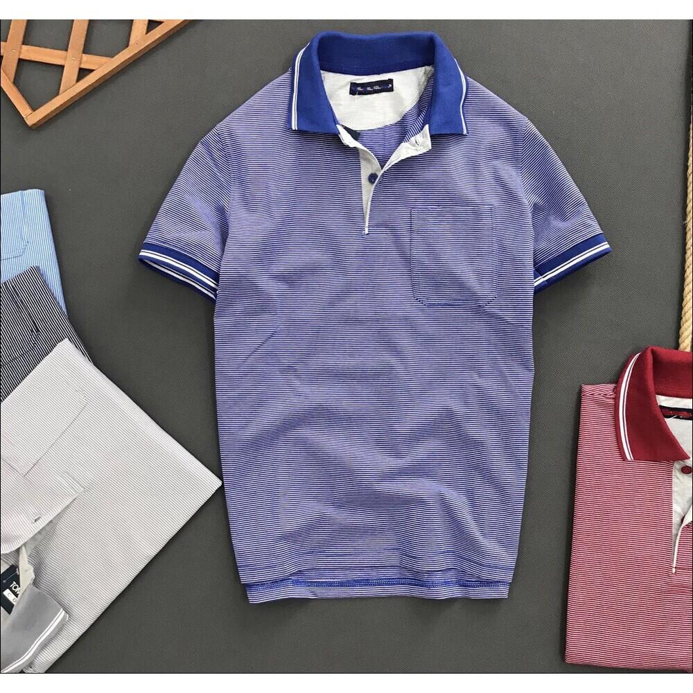Áo thun nam sọc cổ bẻ phối có túi cao cấp