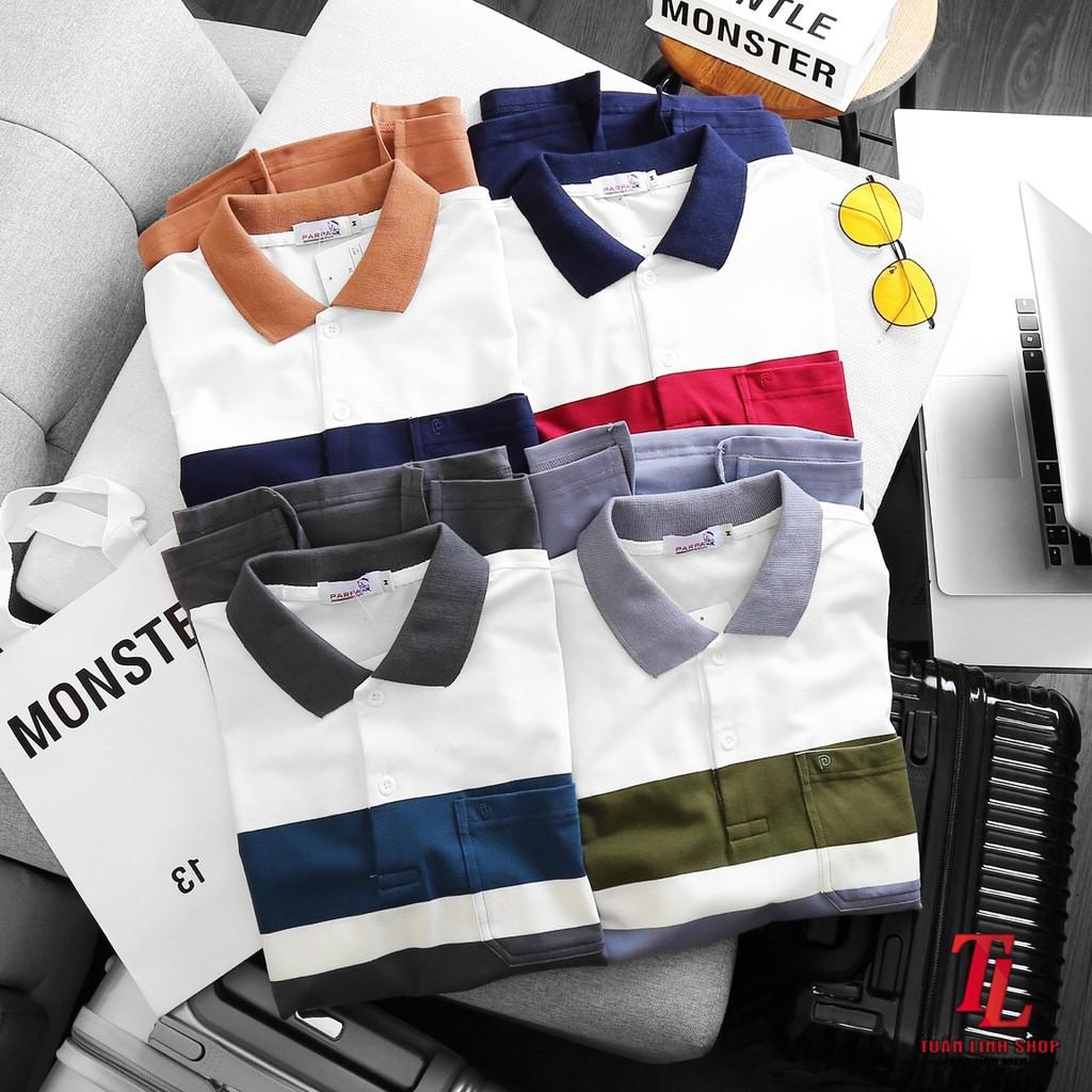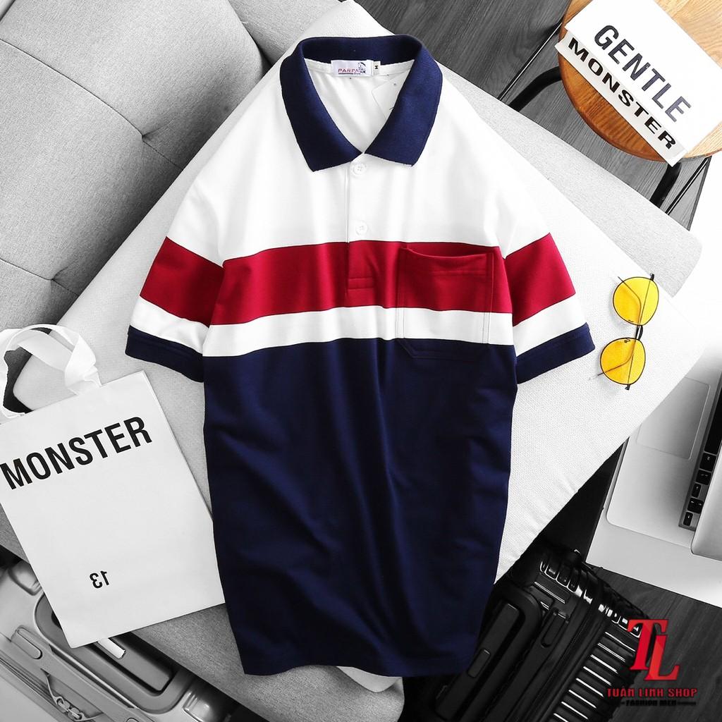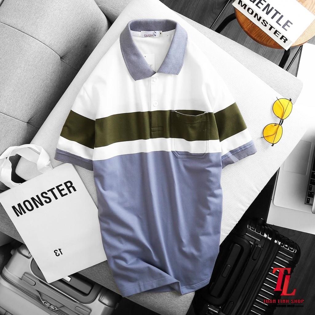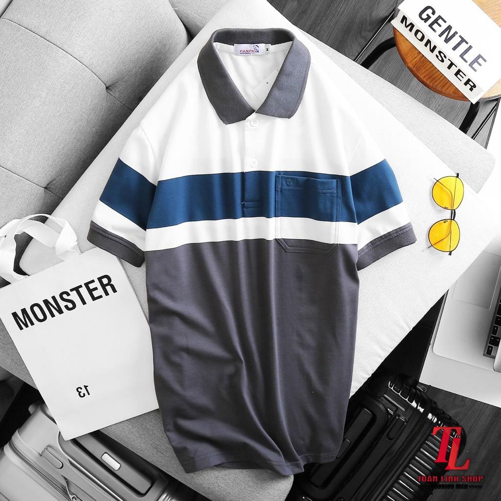 🔰 Áo Thun Nam Cổ Bẻ Sọc Nhuyễn Phối Túi (Có Size 3x) - CS200 📌 #160k ☘ thun cá sấu poly co gi