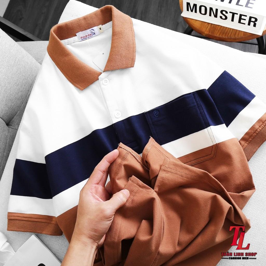 ✨ÁO THUN NAM CỔ BẺ SỌC PAPA TÚI