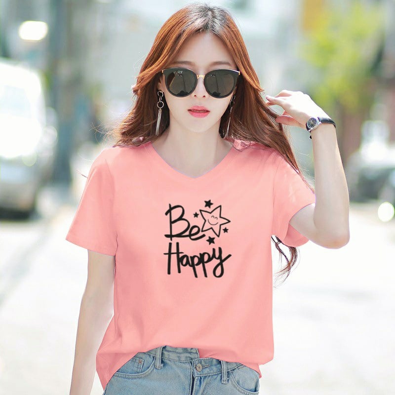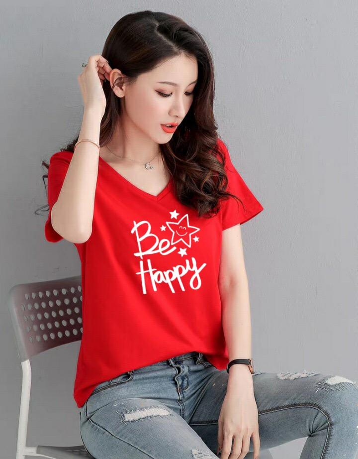 ✨Áo thun nữ cổ tim form rộng MXM in chữ Be Happy cực dễ thương thun 4 chiều từ 45-60kg ( ANU063 )