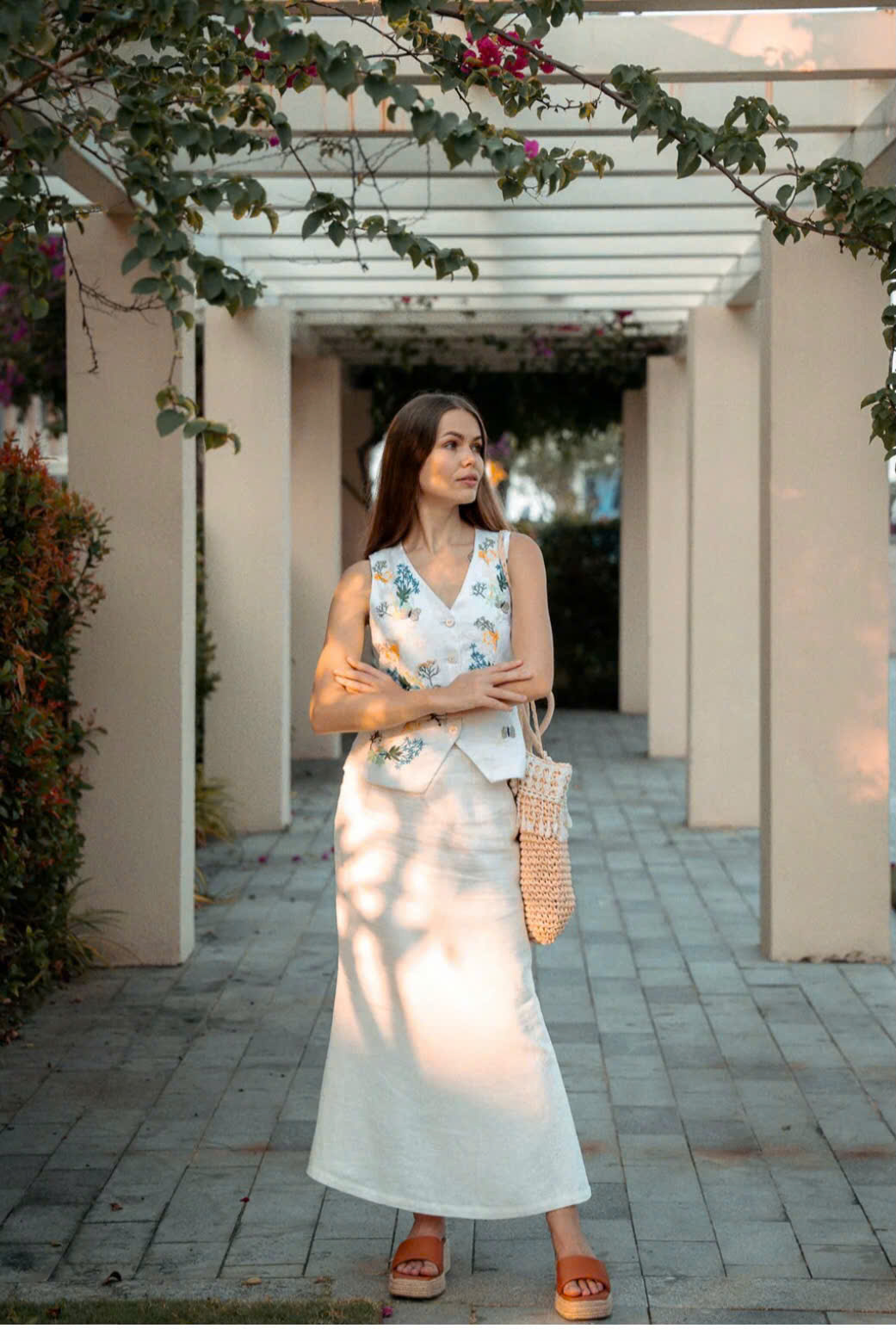 Không chỉ là những bông hoa, chiếc lá đơn thuần, đó là cả một bản hòa ca của thiên nhiên nhiệt đới được tái hiện sống động: những cụm lá cọ xòe rộng, những đóa hoa lạ khoe sắc thắm, hay những nhành cây vươn mình đầy sức sống. Với Áo Vest Linen Thêu Tay Mơ, bạn không chỉ khoác lên mình một món đồ thời trang, mà còn mang theo một tác phẩm nghệ thuật, một mảnh ghép của giấc mơ nhiệt đới đầy màu sắc và sự tự do. Đây là lựa chọn hoàn hảo để thể hiện gu thẩm mỹ tinh tế và tình yêu với những thiết kế thủ công độc bản.