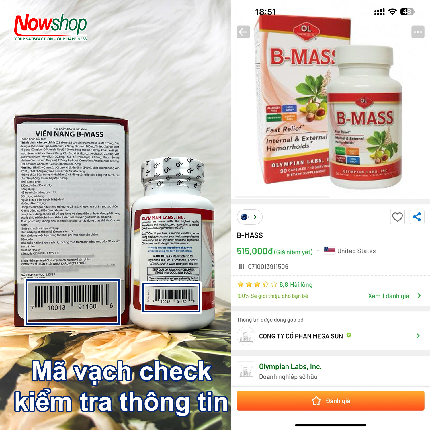 Viên uống B-MASS Olympian Labs - Giải pháp hỗ trợ giảm trĩ từ thảo dược – an toàn, hiệu quả tại nhà!Giảm đau rát – Co búi trĩ – Ngăn tái phát nhanh chóngChiết xuất thảo dược tự nhiên 100% – Dịu nhẹ,...