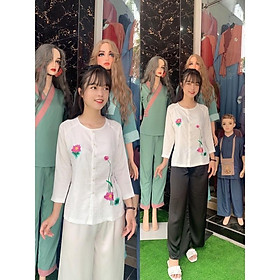 SÉT BỘ ĐỒ NỮ QUẦN DÀI ỐNG SUÔNG RỘNG PHỐI HỌA SỌC THÊU HOA SIÊU XINH ĐẸP SANG TRỌNG TRẺ TRUNG [ĐỒ BỘ CAO CẤP] ️ Bao kiểm hàng text hàng trước khi nhận, Nhận