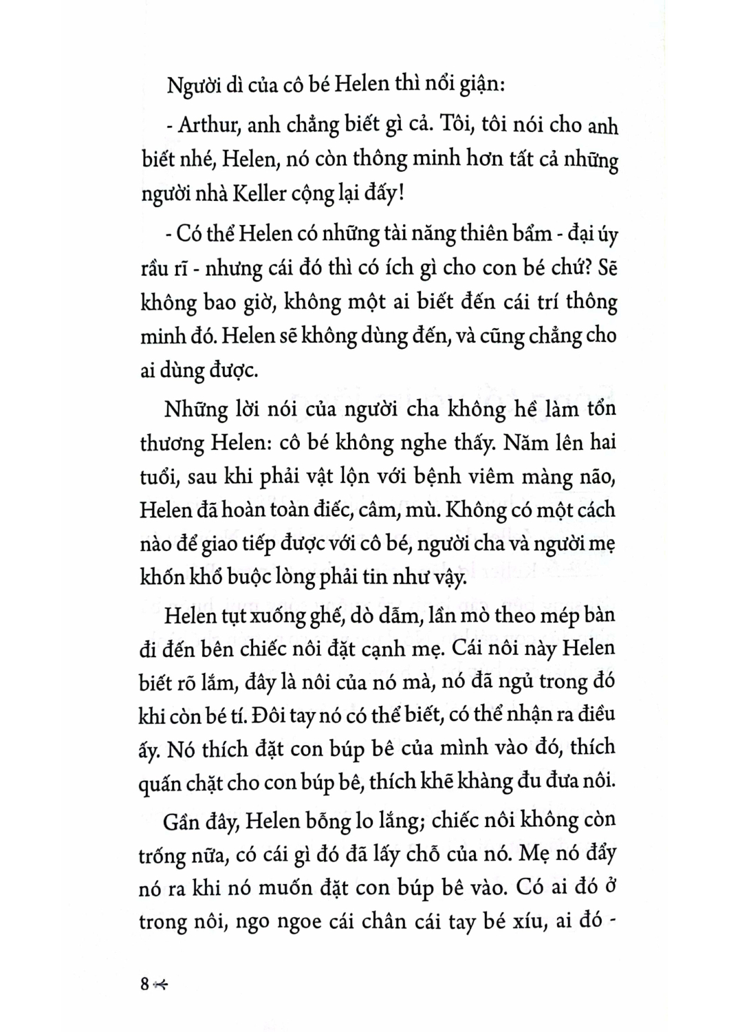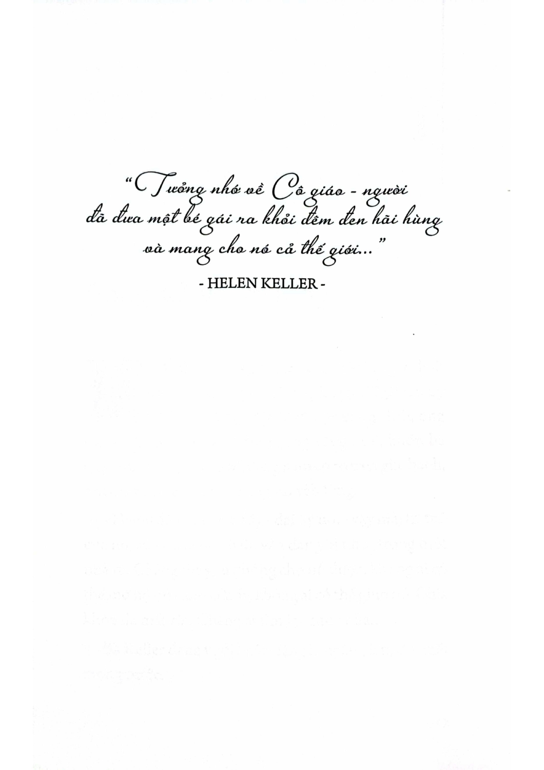 Bà Đại Sứ (PNU) Sau những ngày vật lộn với bệnh viêm màng não vào năm lên hai tuổi, Helen Keller đã hoàn toàn bị điếc, câm, mù. Tương lai tưởng chừng như đen tối