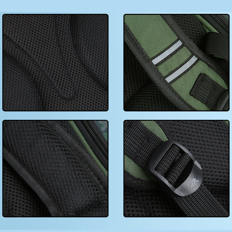 TÍNH NĂNG SẢN PHẨM ️Ba lô toàn diện với đệm mút dày êm giúp chống xô lệch, quai đeo trợ lực, đệm lưng thoát khí, nút điều chỉnh độ dài dây đeo, dây cài ngực. ️