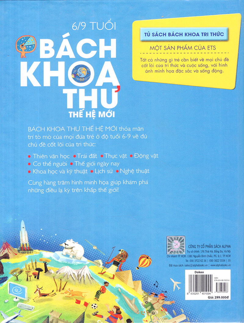Mua tại TiktokBách Khoa Thư Thế Hệ Mới thỏa mãn trí tò mò của mọi đứa trẻ ở độ tuổi 6-9 về đủ chủ đề cốt lõi của tri thức, từ những hành tinh xa xôi cho đến Trái đất, từ bầu trời cho đến những cánh rừng mênh mông, từ thời tiền sử cho đến thế giới hiện đại,… Với hình minh họa rất độc đáo, lời dẫn đầy khơi gợi, Bách khoa tri thức thế hệ mới sẽ đưa các em đi những bước đầu tiên vào thế giới của tri thức.