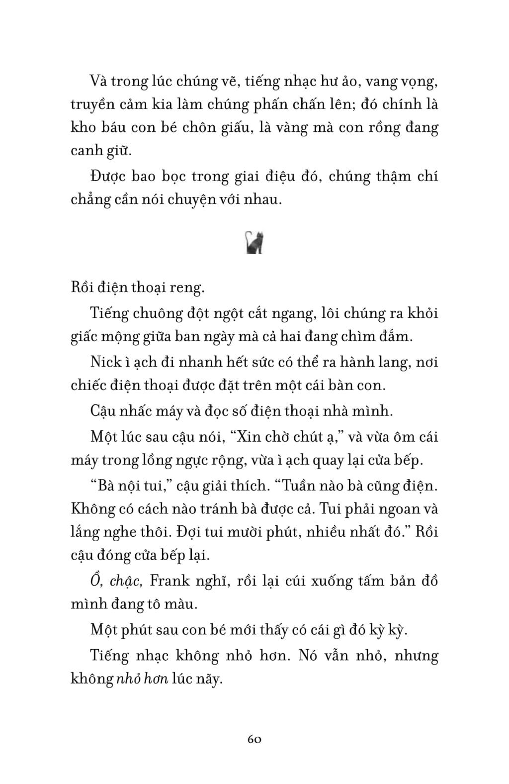 Nhưng với Nick, Frank sớm nhận ra m.ình không thể trông mặt mà bắt hình dong. Khi tới nhà cậu, con bé nghe thấy một giai điệu lạ lùng, đẹp đẽ, và huyền bí. Giai điệu đưa con bé tới một cánh cửa bí mật, và đằng sau đó là những sinh vật kỳ diệu mà con bé chưa từng tưởng tượng được, ngay cả trong những giấc mơ. Lần đầu tiên trong suốt một thời gian dài, Frank cảm thấy hạnh phúc, rồi dần dà con bé và Nick trở thành bạn.