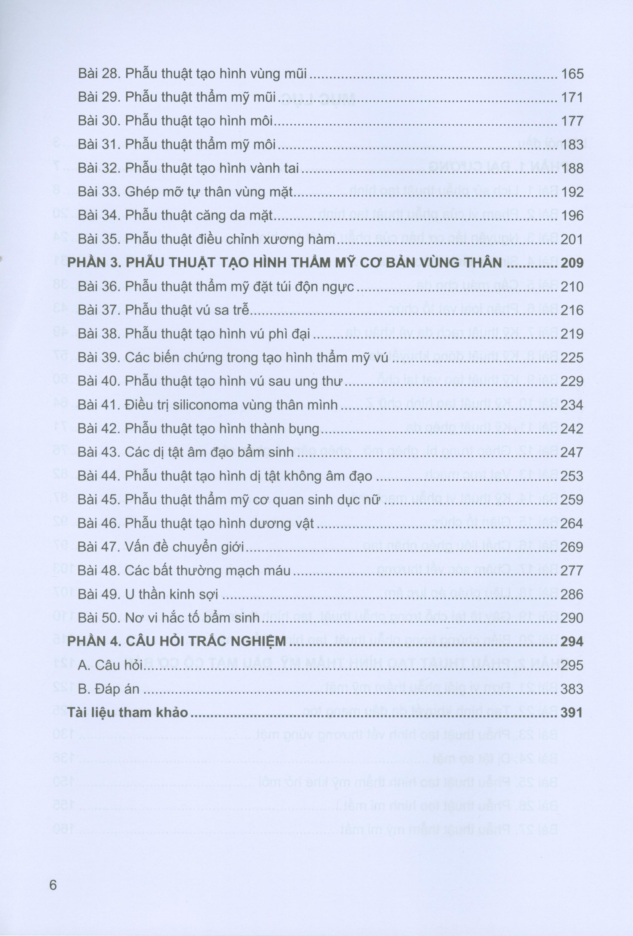 Cuốn sách "Bài giảng Phẫu thuật Tạo hình Thẩm mỹ cơ bản" gồm bốn phần. Phần thứ nhất giới thiệu các kiến thức cơ bản hầu như chưa được giới thiệu trong toàn bộ thời