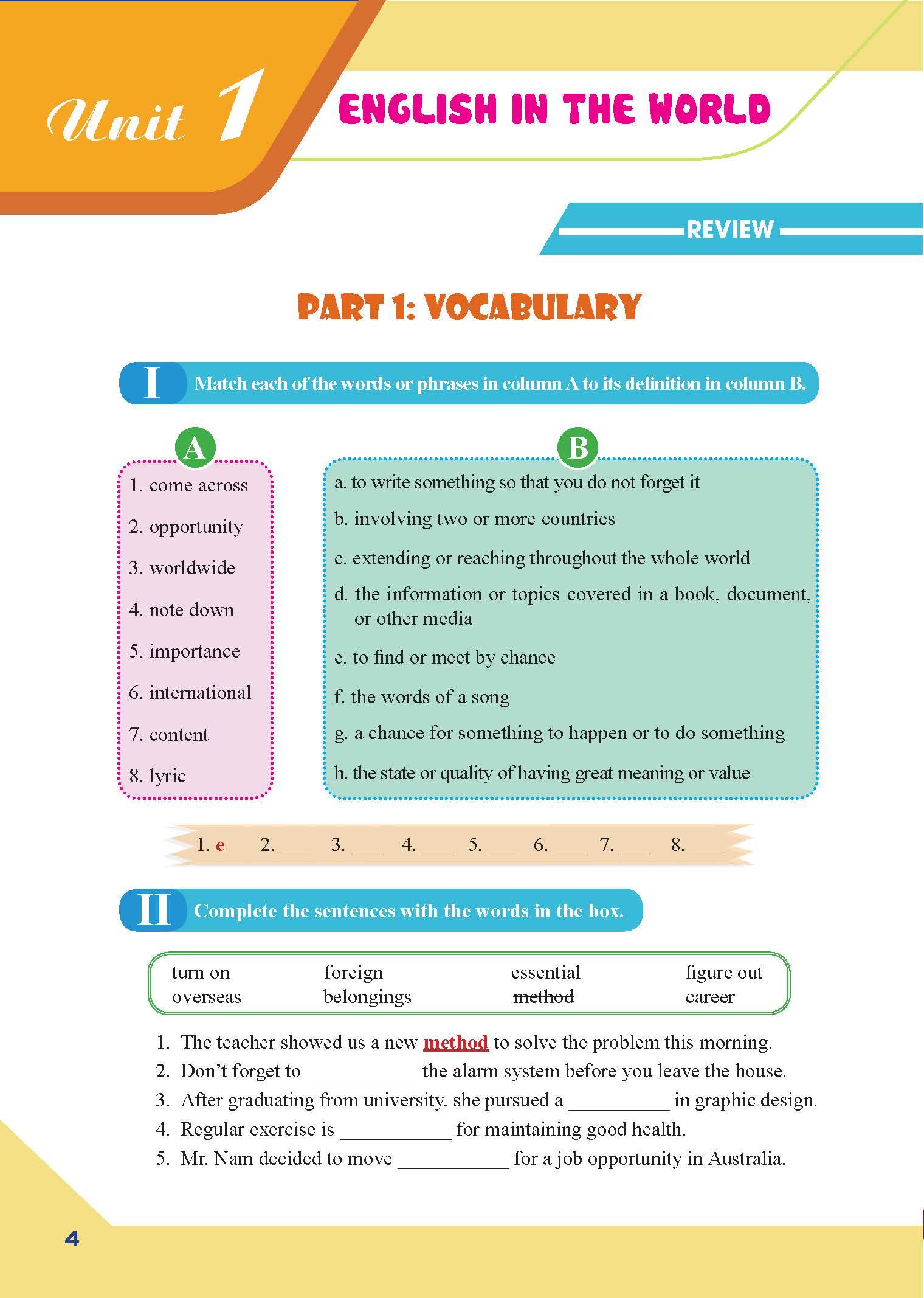 BÀI TẬP BỔ TRỢ TOÀN DIỆN TIẾNG ANH 8 - Người bạn đồng hành của các em học sinh 1 TEST 1 UNIT 1 & 2