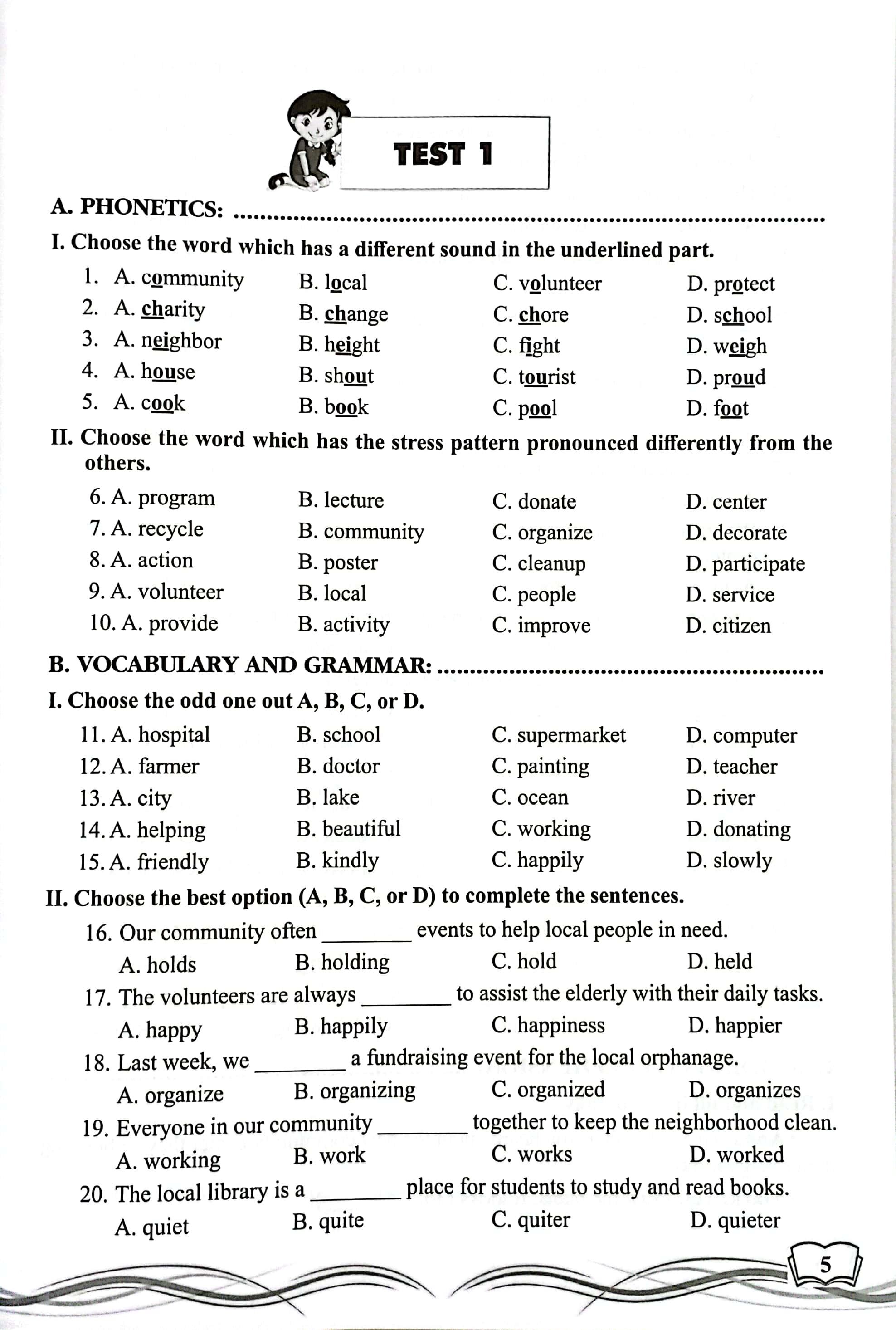 Cuốn sáchđược biên soạn nhằm giúp các em học sinh lớp 9 được củng cố và phát triển kỹ năng làm bài kiểm tra môn tiếng Anh.