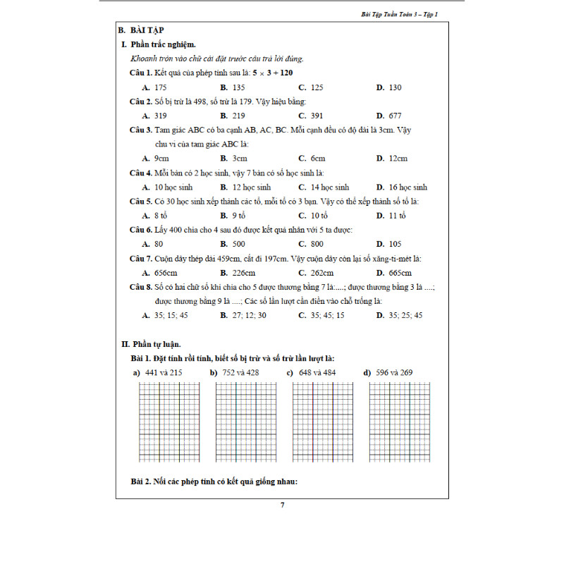 Combo Bài Tập Tuần và Đề Kiểm Tra Toán, Tiếng Việt Lớp 3 (Tùy chọn theo Chương trình SGK mới) Lưu ý: Chọn đúng chương trình học vả kỳ học ở các 2 mục tùy