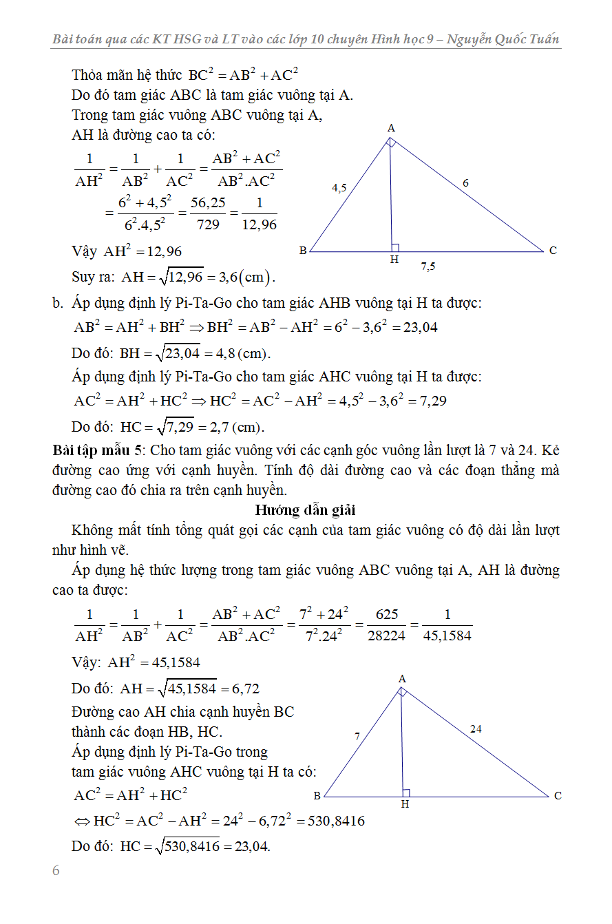 Chương I: Hệ thức lượng trong tam giác vuông