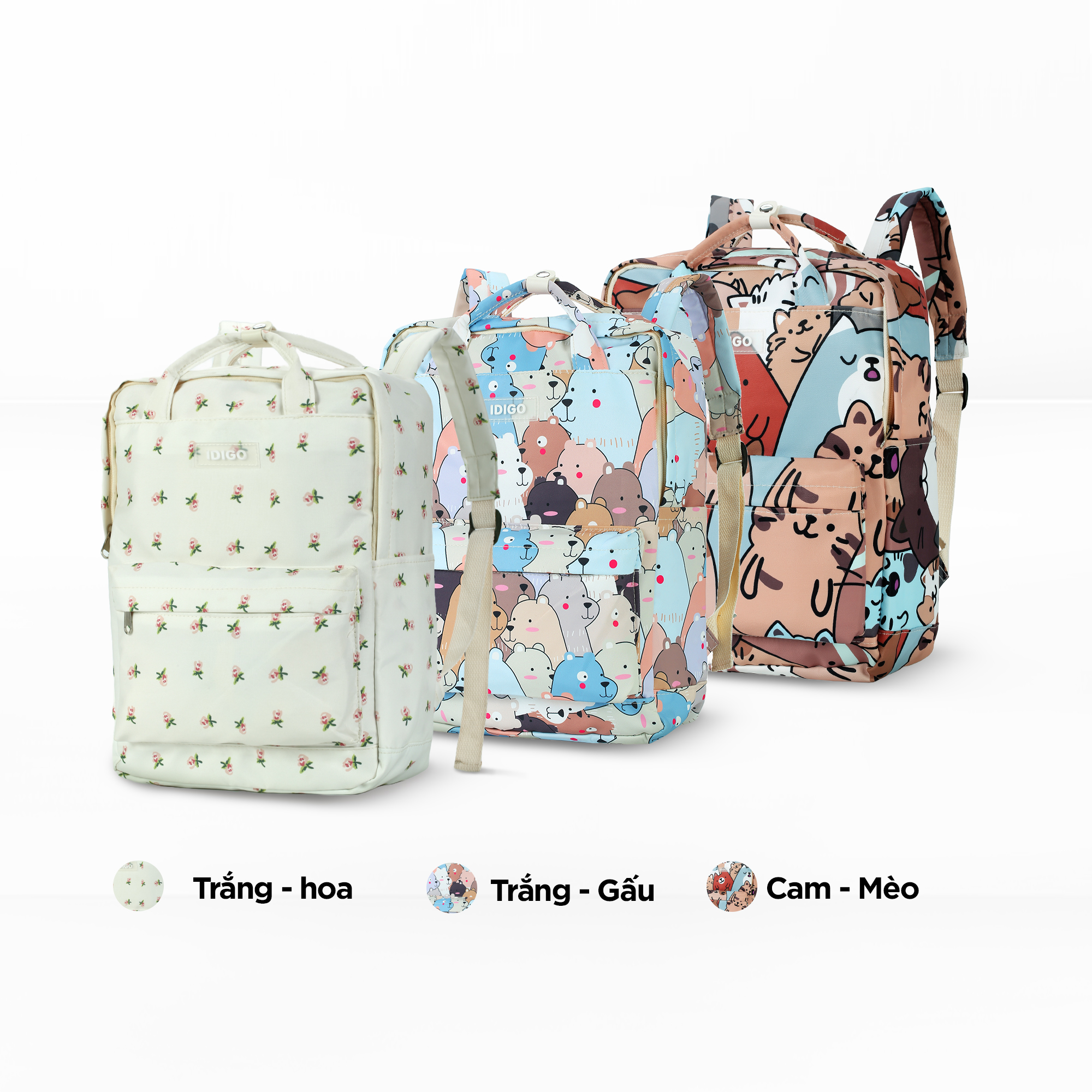 Phom balo chữ nhật với chất liệu Polyester phối vải bố canvas có độ mềm và nhẹ vừa phải giúp balo không bị cong vênh, nhăn gãy khi sử dụng. Đặc biệt Logo IDIGO bằng cao su may trên balo chống trầy và bong tróc khi kết hợp trên nền chất liệu balo bằng vải.