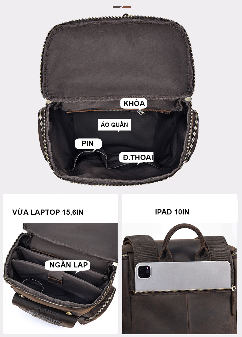 Balo Da Bò Thật VINTAGE Phong Cách Doanh Nhân Đa Chức Năng TUDA BPL304