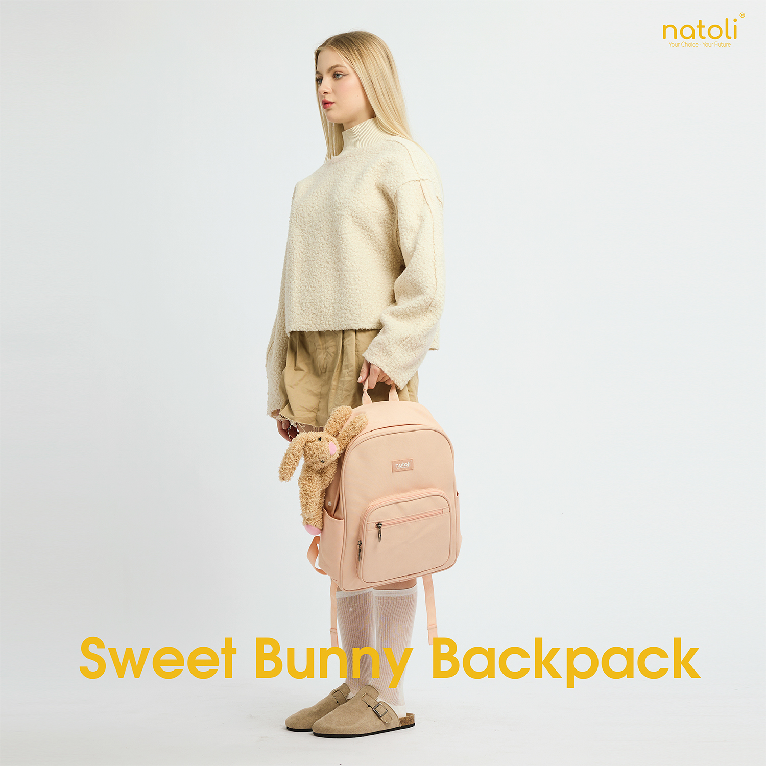 ✨Balo nữ thỏ bông jellycat bunny cao cấp NATOLI nhiều ngăn đi học cute phong cách hàn quốc - BST Sweet Bunny Backpack B28