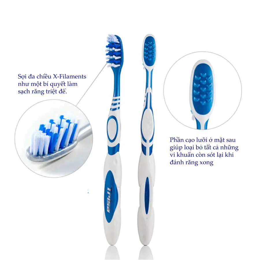 Mua tại TiktokĐể khắc phục được những tác hại cho răng miệng bởi thuốc lá, trà và cafe,...Trisa đã nghiên cứu và sản xuất thành công bàn chải dành riêng cho những bạn hút thuốc lá với những tính năng đặc biệt. Lông bàn chải màu trắng kết hợp với các hạt micro tinh chất ngọc trai giúp loại bỏ một cách triệt để mảng bán của thuốc lá, trà và cafe. Sợi đa chiều X-Filaments như một bí quyết làm sạch răng triệt để. Phần tay cầm to giúp người dùng cầm bàn chải một cách dễ dàng, chắc chắn hơn khi đánh răng. Phần cạo lưỡi ở mặt sau giúp loại bỏ tất cả những vi khuẩn còn sót lại khi đánh răng xong. Sản phẩm được nhập khẩu trực tiếp tại Thụy Sỹ - Châu Âu. Đã được kiểm tra chất lượng lâm sàng."
