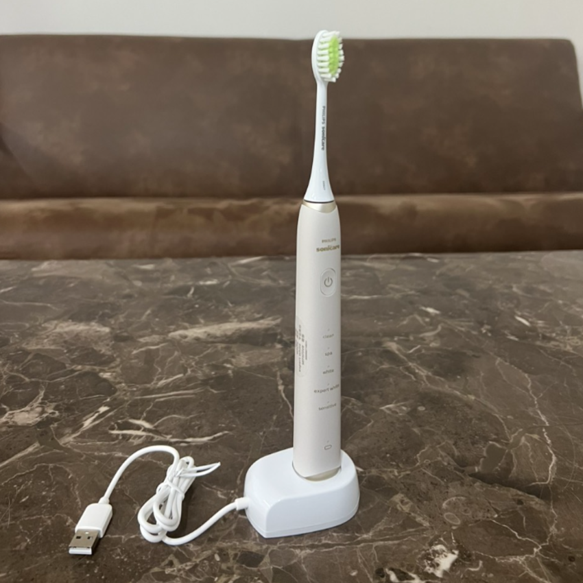 - Đầu chải được thiết kế viền lông độc đáo, kết hợp với tốc độ và cường độ vượt trội, bàn chải điện Sonicare giúp tối ưu hóa việc làm sạch và chăm sóc răng miệng Chế độ spa sáng tạo với công nghệ rung âm tiên tiến